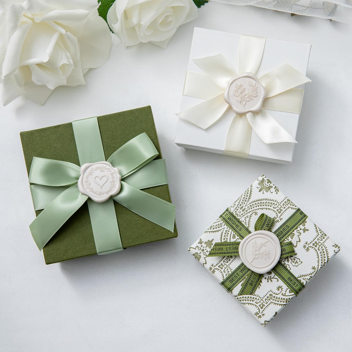 60 Pcs Ivory Wax Seal Stickers Self-Adhesive Envelope Seals Stamp Stickers, Perfect for Wedding Invitations Seating Chart Christmas Gift Wrapping 3 Designs in 1 Pack