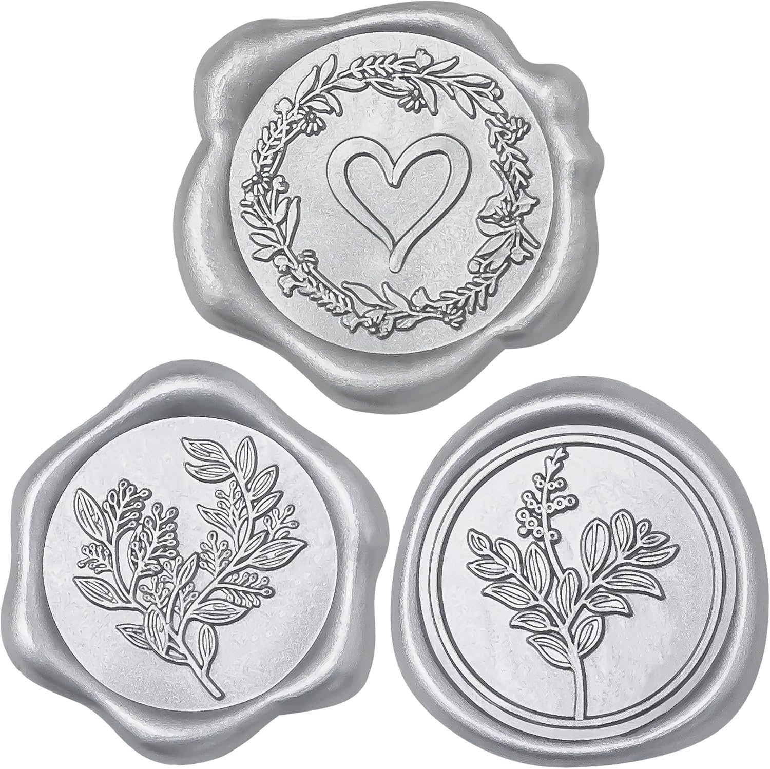 60 Pcs Silver Wax Seal Stickers Self-Adhesive Envelope Seals Stamp Stickers, Perfect for Wedding Invitations Seating Chart Christmas Gift Wrapping 3 Designs in 1 Pack