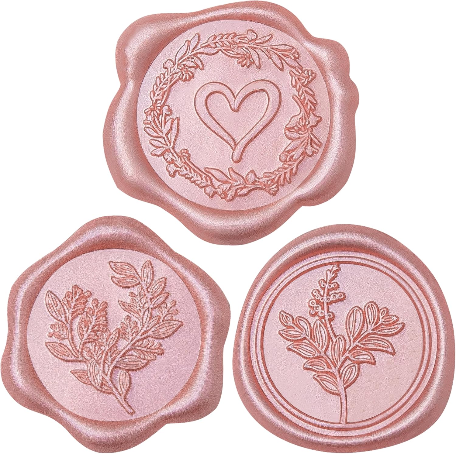 60 Pcs Rose Gold Wax Seal Stickers Self-Adhesive Envelope Seals Stamp Stickers, Perfect for Wedding Invitations Seating Chart Christmas Gift Wrapping 3 Designs in 1 Pack