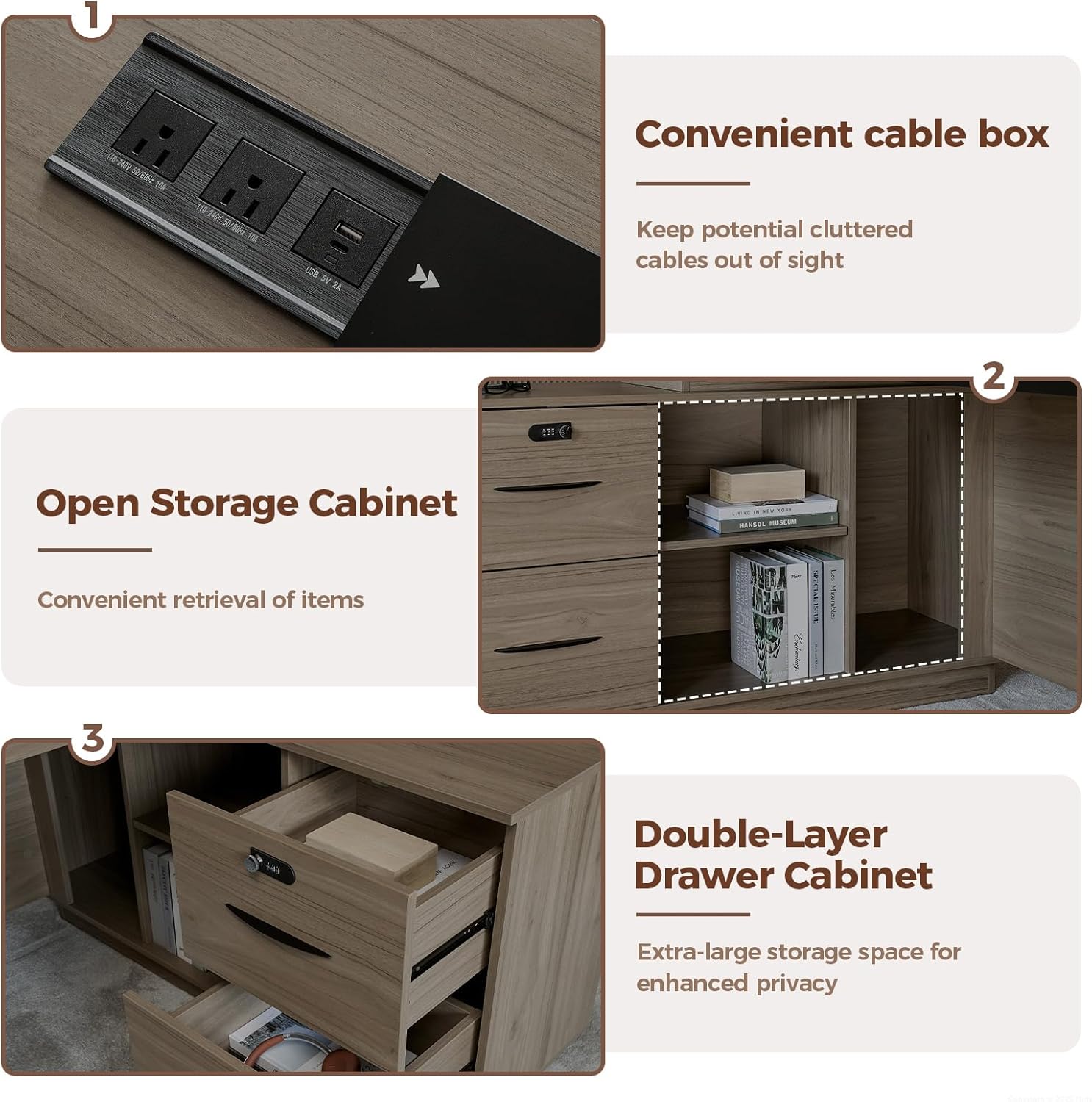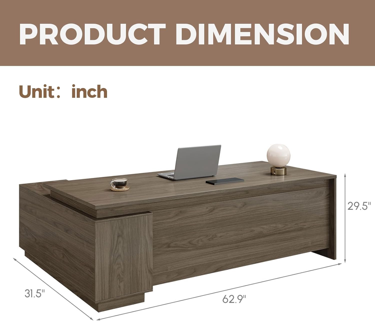 Executive Office Desk with Reversible Cabinets, Lockable Drawers, Cable Box & Privacy Panel – Modern Wood Grain Desk for Home Office or Business Use(Black Walnut,63" L*32" W*30" H)