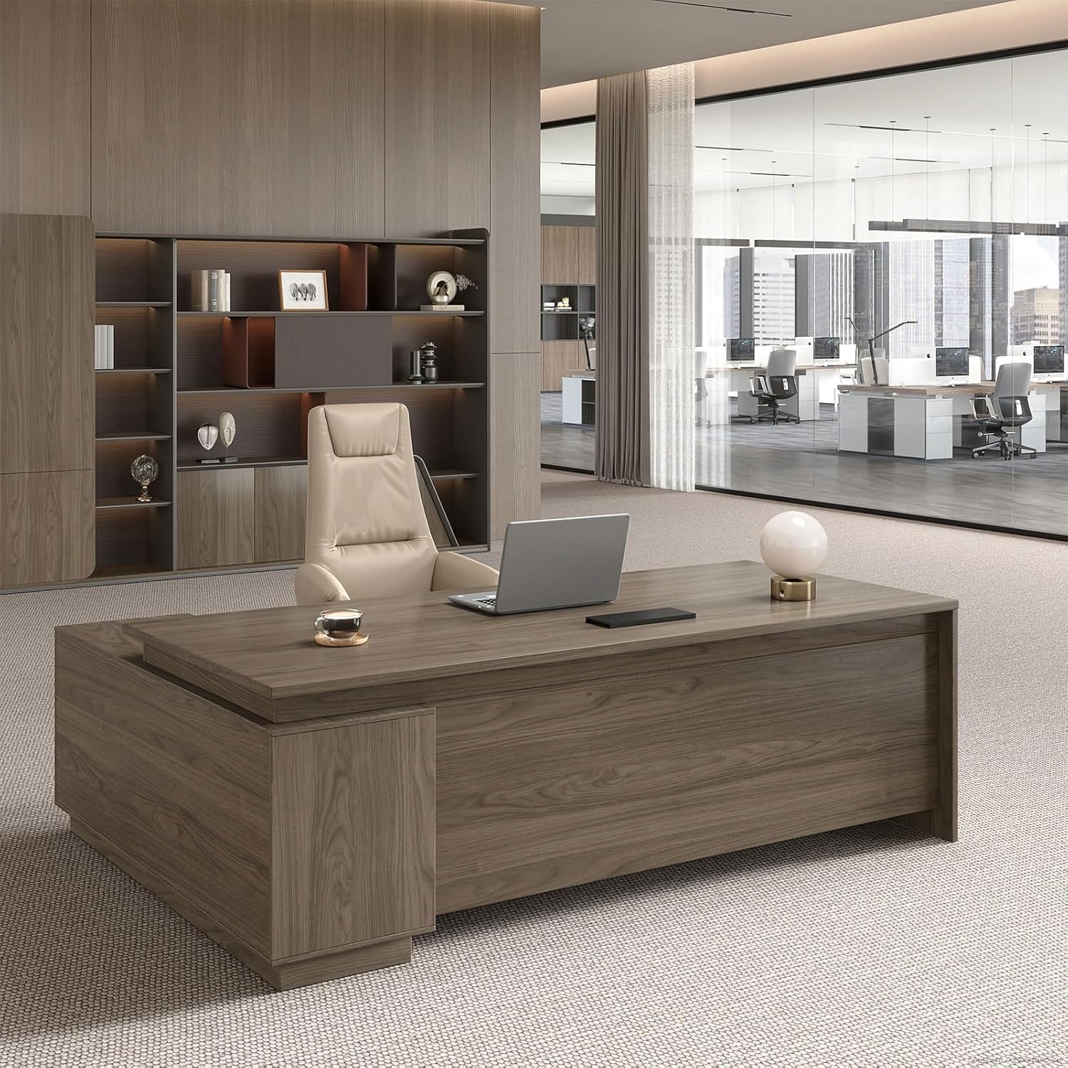 - Modern Design with Spacious Work Surface The Nuipesn executive desk features a sleek rectangular design with a generous desktop for monitors, laptops, and documents. Finished in elegant wood grain, it blends seamlessly into executive offices, home workspaces, or professional meeting rooms.