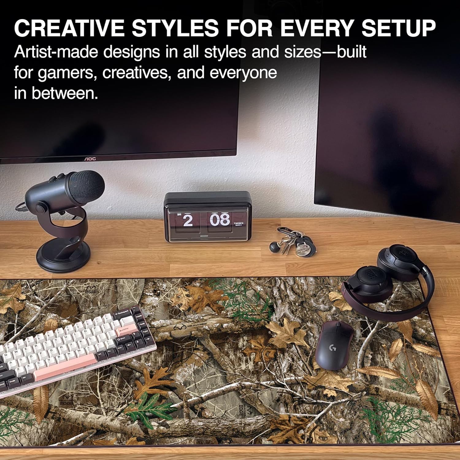 MPCO. Real Tree Large Gaming Desk Pad - 36" x 17" Aeroglyde Fabric Edge Green – Without Logo Desk Mats - Non-Slip, Washable, Smooth Glide for Precision Gaming & Work