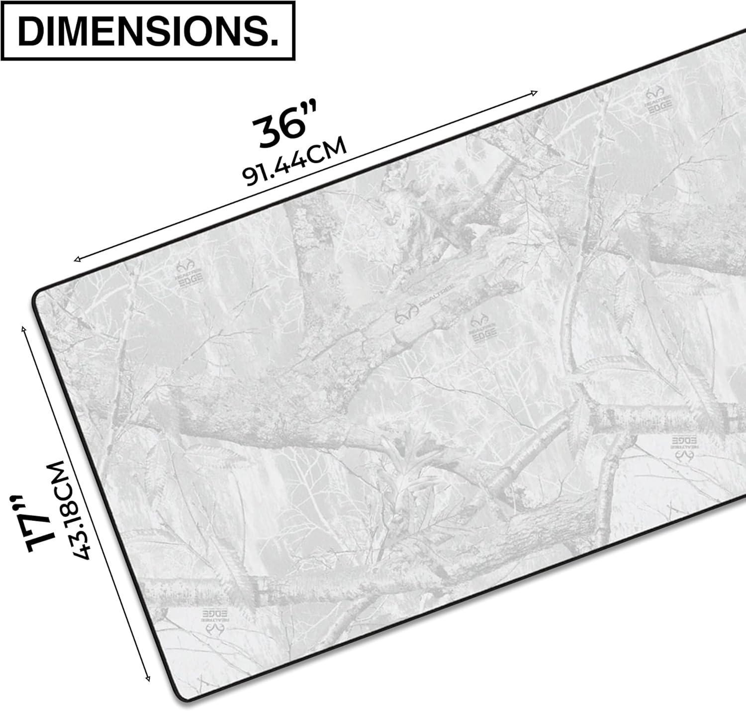 MPCO. Real Tree Large Gaming Desk Pad - 36" x 17" Duraglyde Fabric Edge Snow White – Without Logo Desk Mats - Non-Slip, Washable, Smooth Glide for Precision Gaming & Work