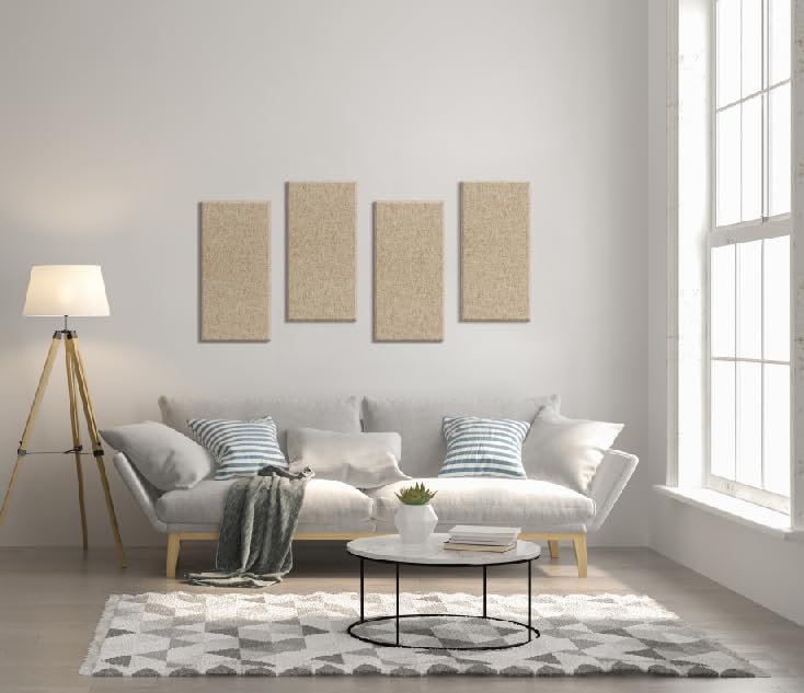 Olanglab Fiberglass Acoustic Wall Panels 4 Pack, 11.8'' x 23.6'' Sound Panels, Fabric Wrapped Sound Proof Panels for Walls (Khaki)