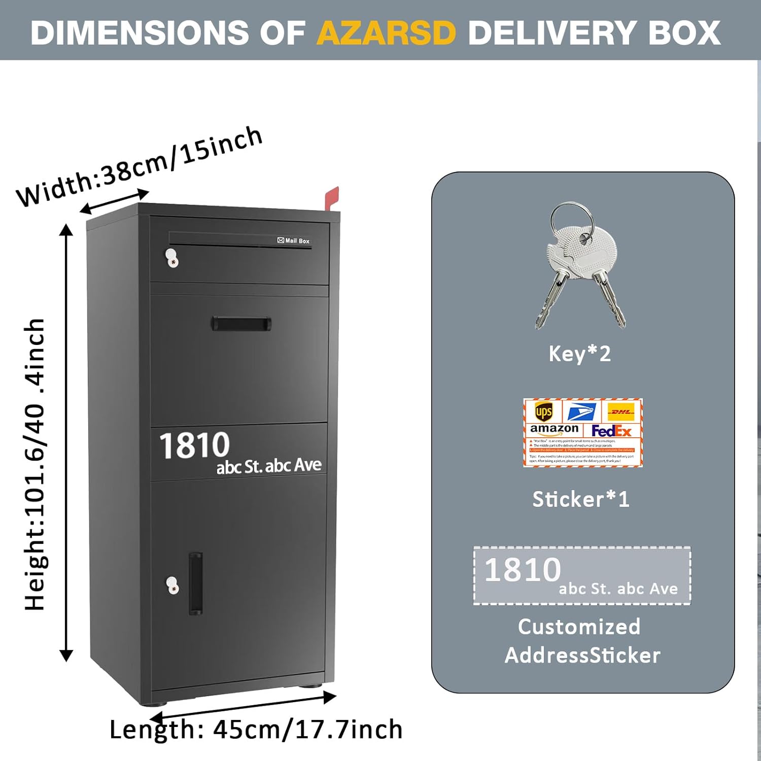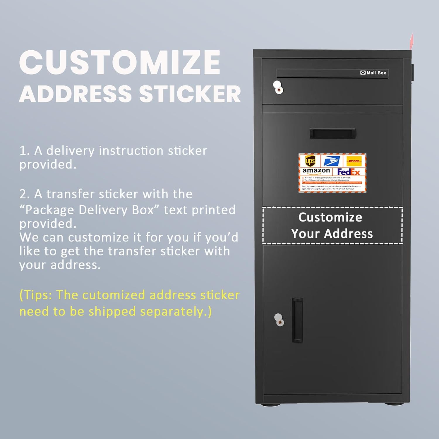 - **Fashion customization service:**The parcel drop boxes for outside can provide customized address sticker service, for the deliveryman to take photos to confirm when delivering. At the same time, you can choose a kind of magnetic refrigerator magnet, which can decorate the metal finish of the delivery boxes, making your parcel parcel drop boxes unique. PS: There is no sticker in the package, it needs to be sent separately.