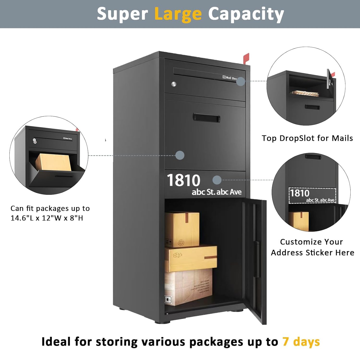 - **Large Capacity Design:** Large package delivery box spacious interior accommodates small to medium-sized parcels, making it perfect for daily deliveries to homes or offices.