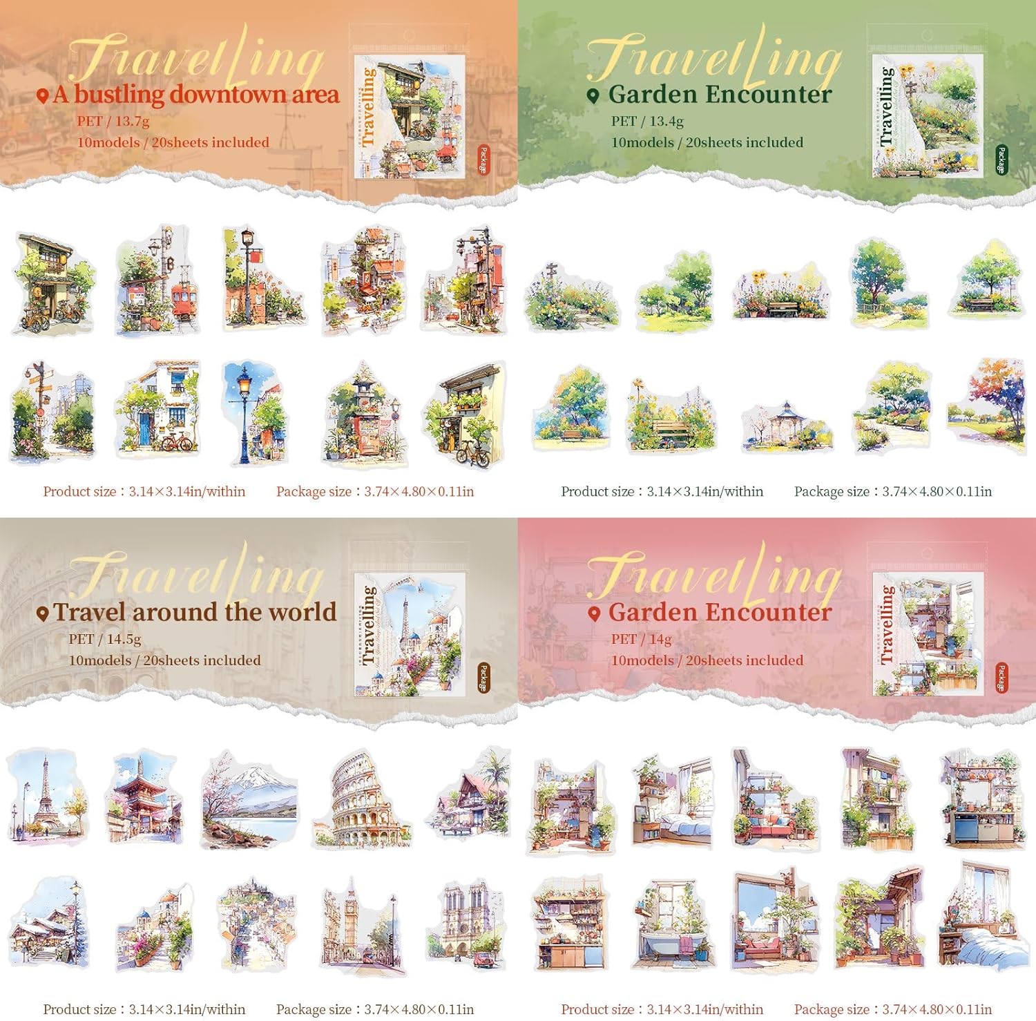 - Art journaling Accessory Set: Our scrapbooking sticker set contains 120 pieces (60 styles) assorted beautiful Traveling Landscape Sticker Set for DIY scrapbooking laptop bullet journal wall window card. These patterns come in a variety of forms and styles and can be combined at will, to meet your daily needs.