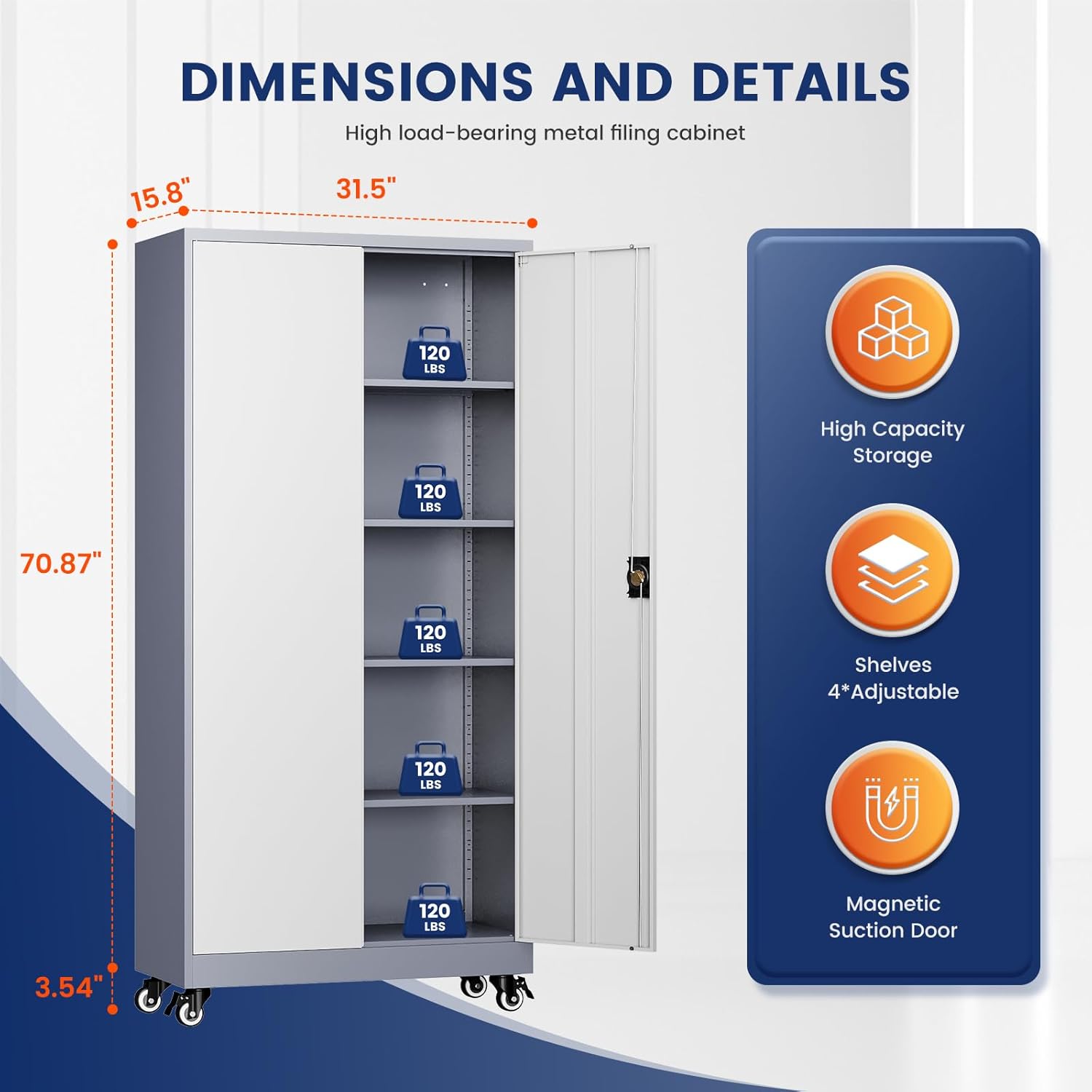 - 『Practical Design』:Our tall metal cabinet equipped with lock and 4 adjustable shelves to provide adaptability and convenience. High-grade lock picking to secure valuables, two keys are included. Regardless of what your storage needs are, you have the ability to create a unique storage space to suit them.
