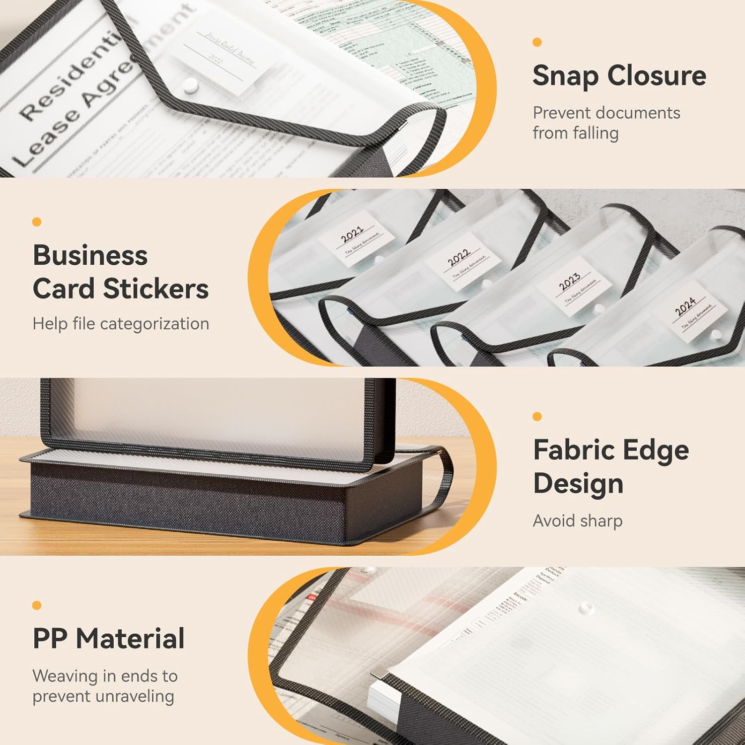 - Multifunction: Perfect for daily use, such as school subjects, office documents files, traveling A4 files and business cards. And suitable for any area of ββlife, Creativity and crafts, home life management, office life, etc. In addition to managing important document data, finances and bills, it can also store handicraft material kits, painting tools, and serve as a DIY project planner.