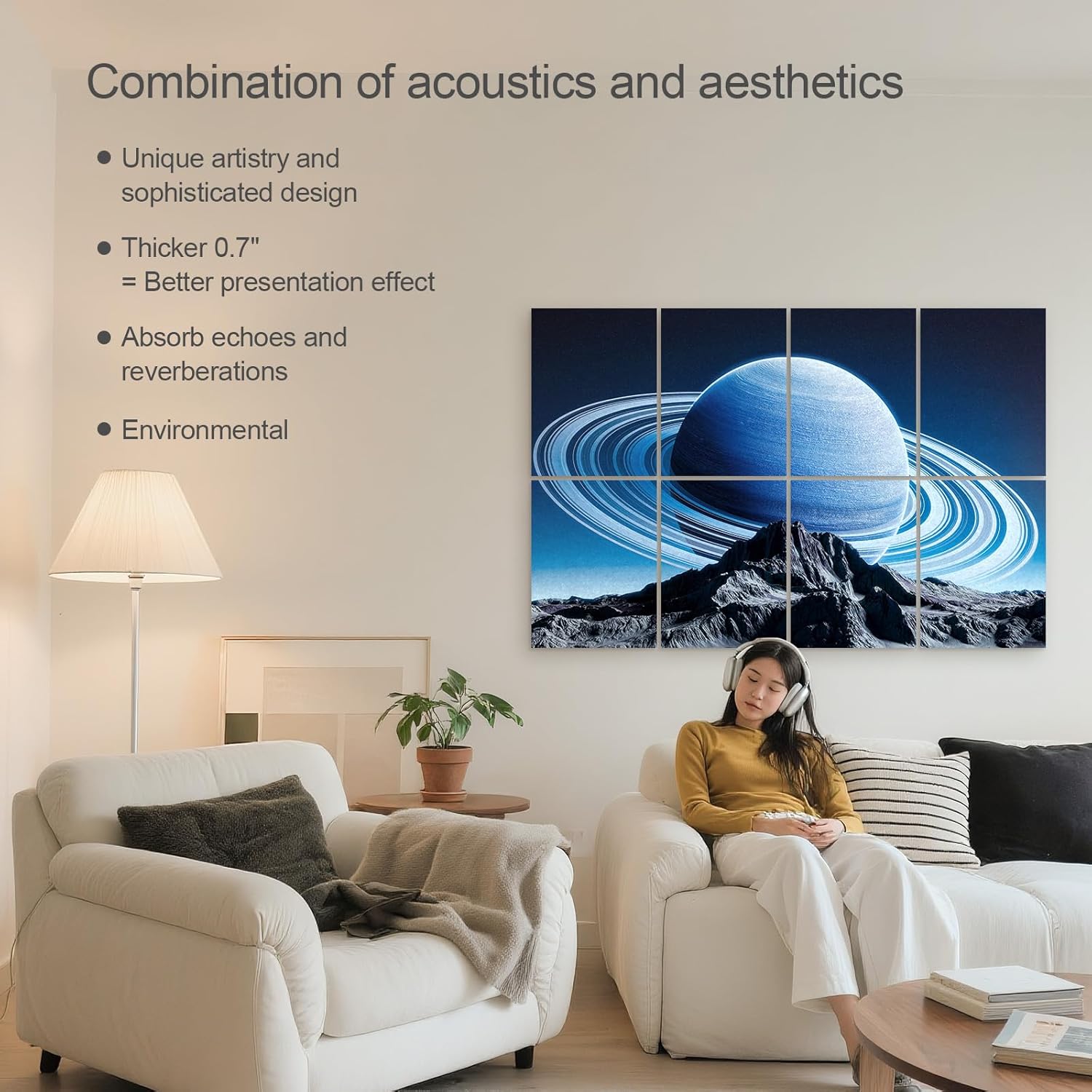 UMIACOUSTICS 8 Pcs 0.7Inch Thick Art Acoustic Panels, Total 47.2” x 31.5” Decorative Acoustical Wall Panels, Sound Absorbing Art Panels for Home, Office, Hotel, Astronomy-Aurora
