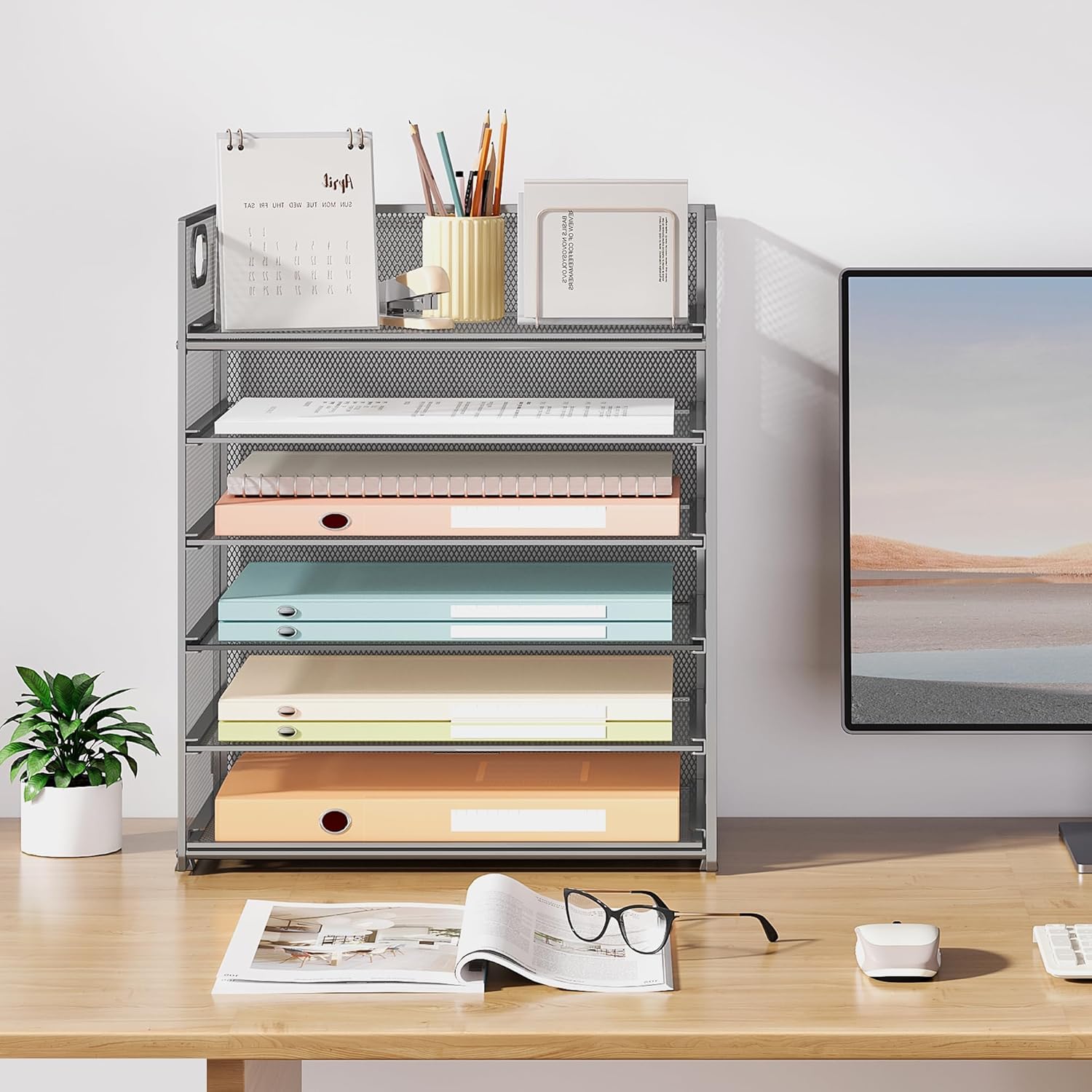 - Applicable Scenarios: This paper organizer for desk suits office, home, and school. holds different-sized items. Keep desktop organized by sorting manage file, papers, bill, letters, documents, folders, books, magazines, staplers, calculators effectively