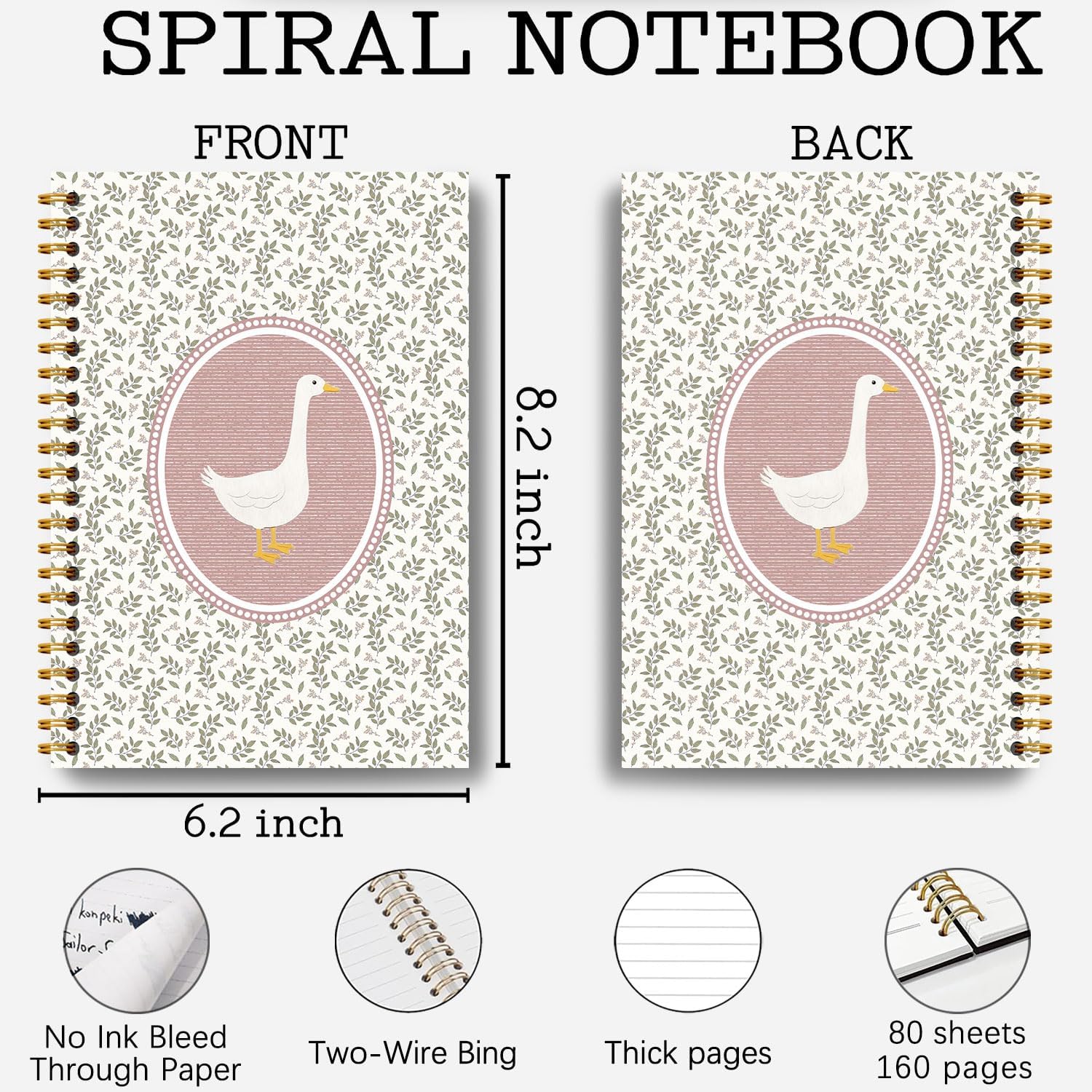 Guymn Vintage Pink Floral Goose Notebook, Cottagecore Botanical Goose Journal for Kids Girls, Geese Animal Lover Gifts Hardcover Spiral Notebooks Journals 5.5x8.3 Inch