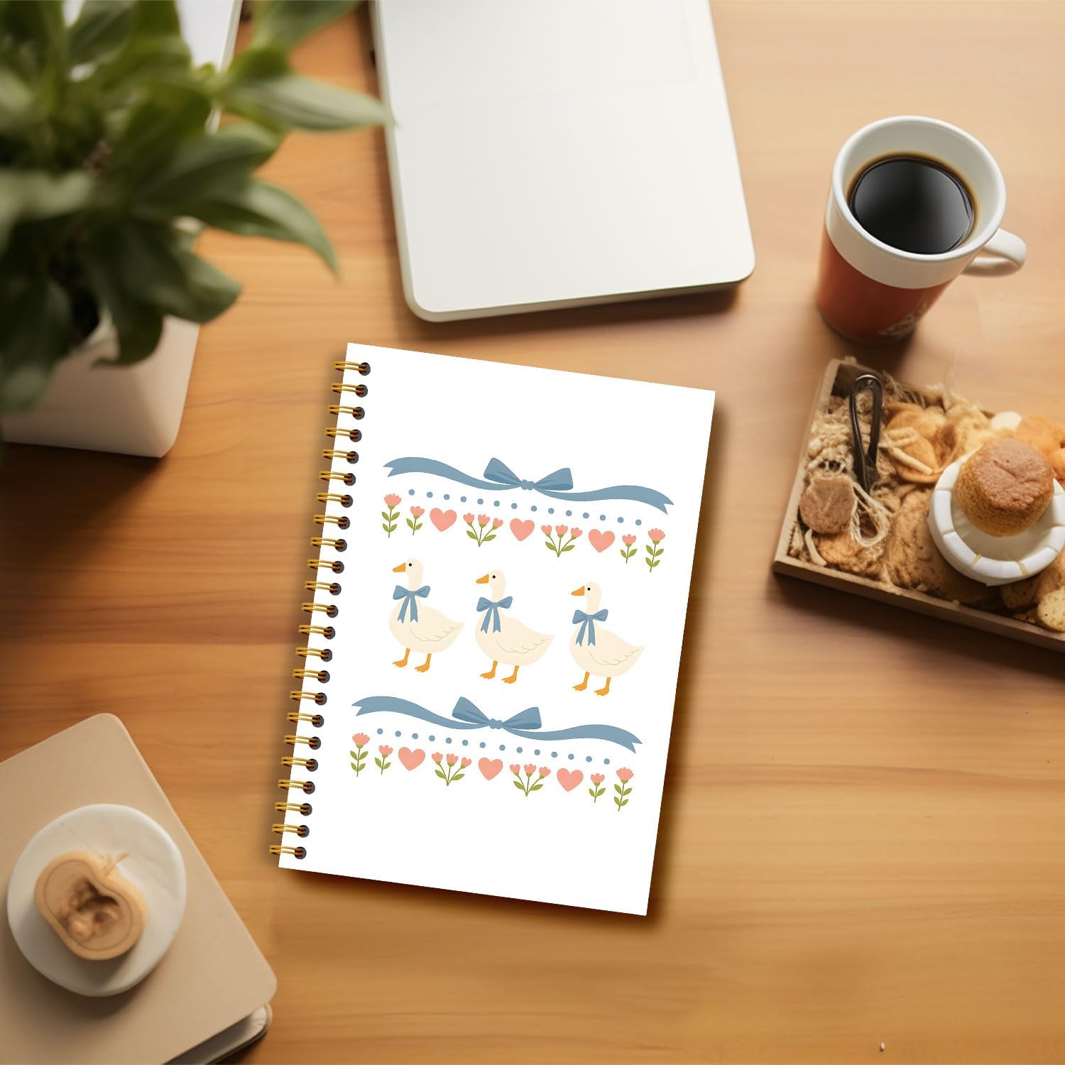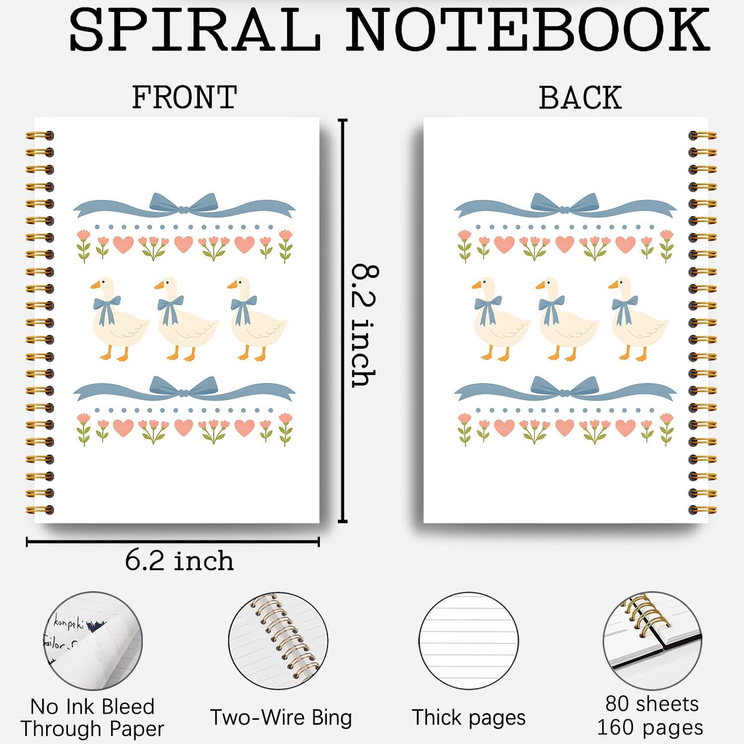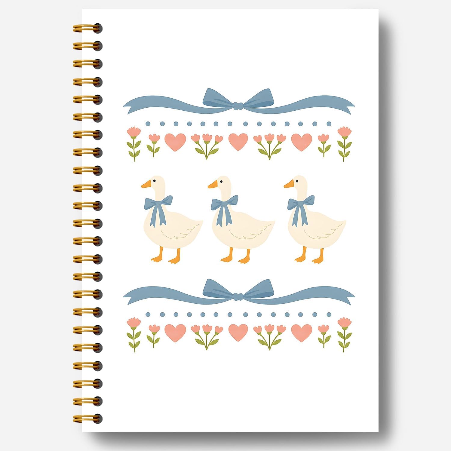 Guymn Coquette Blue Bow Goose Notebook, Groovy Aesthetic Floral Goose Journal for Kids Girls, Geese Animal Lover Gifts Hardcover Spiral Notebooks Journals 5.5x8.3 Inch