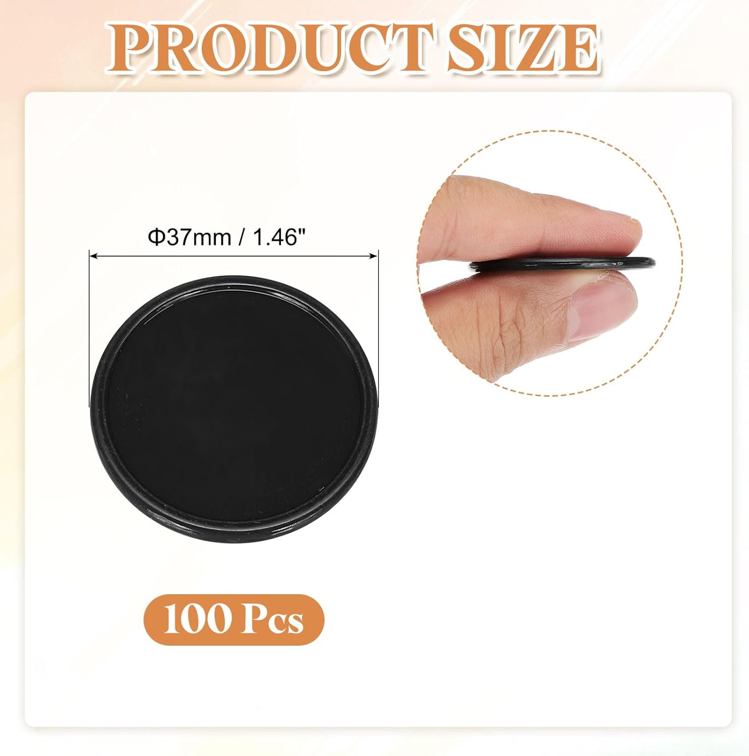 - Size & Packaging - The package contains 100 pcs of black plastic poker chips, measuring 1.46 inches (37mm) in diameter. The edge of each plastic chip is higher than the middle, and the surface is smooth, which makes it convenient for picking up.