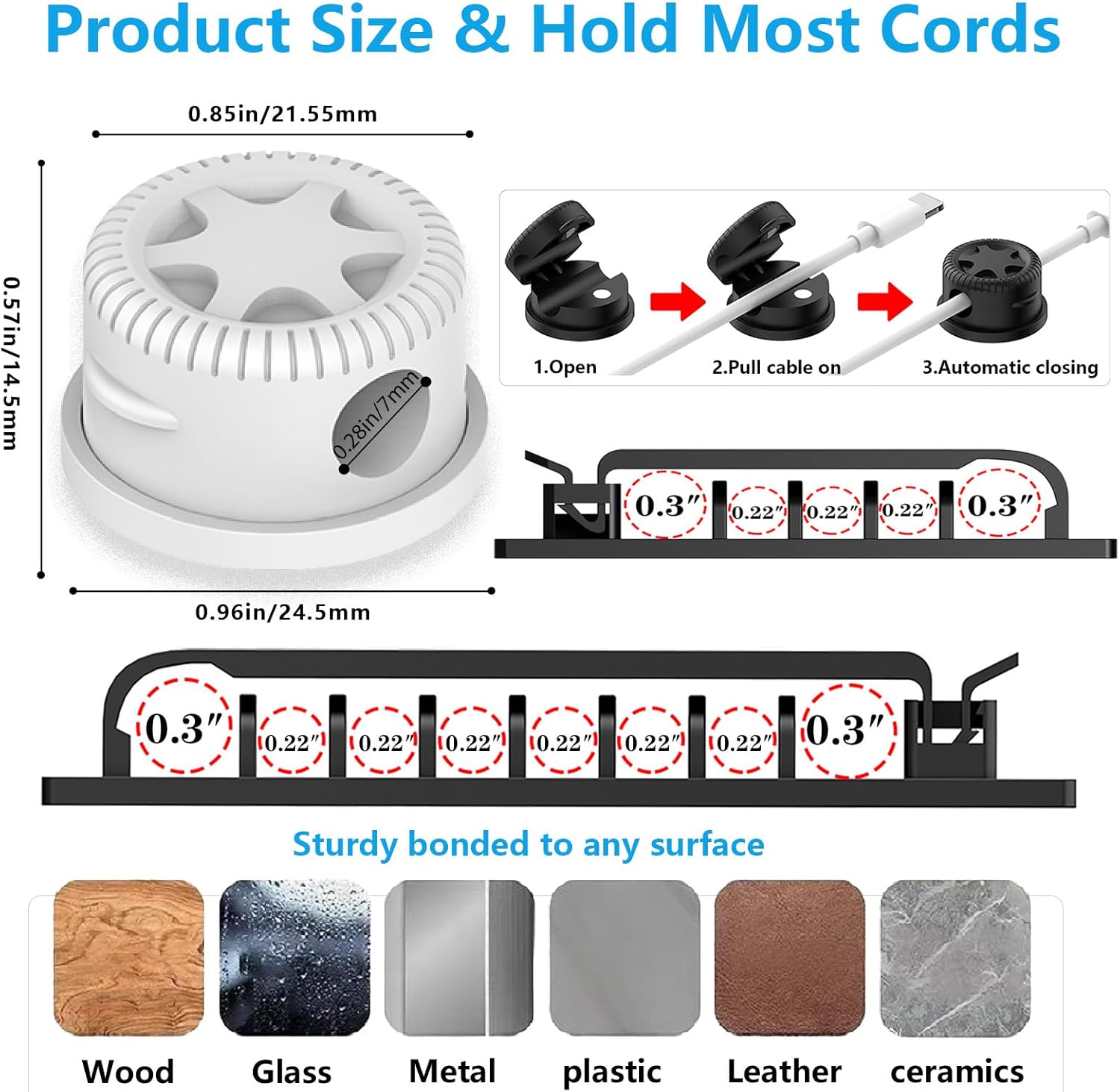 - 360Β°Swivel Magnetic Cord Holders Design:8 Pack Magnetic Cord Holders with 0.3 inches cable slot Diameter can hold most cables,rotating base Design allows you to pull cables from any angle without tangling or straining.Only open and put cable in, it will be easily closed under the magnetism, finish in a second.