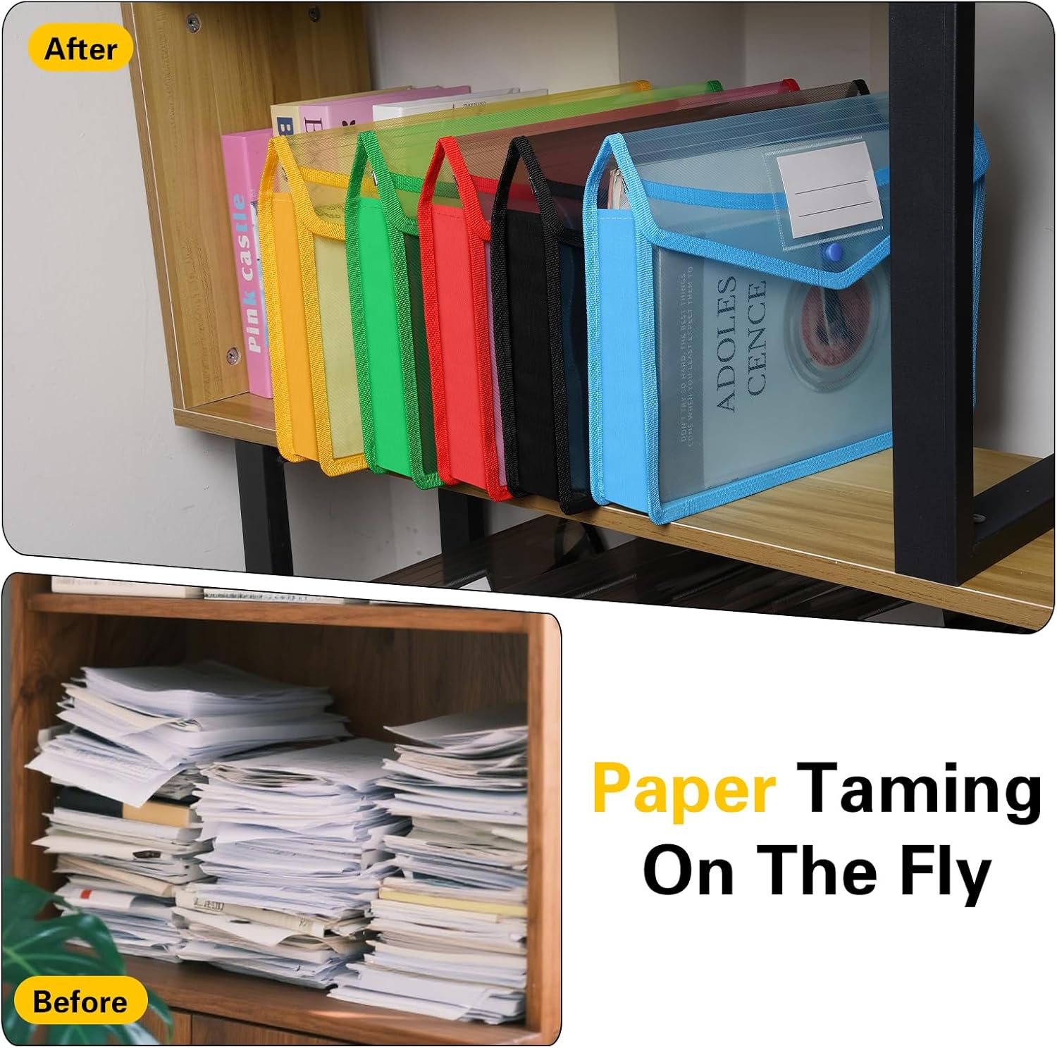 - This Expanding File Folder include 1X Red,1X Blue,1XBlack,1X Yellow,1X Red. Help Distinguish files. Size:13''X9.76X2.16'' in,Fit Letter/A4 Size files