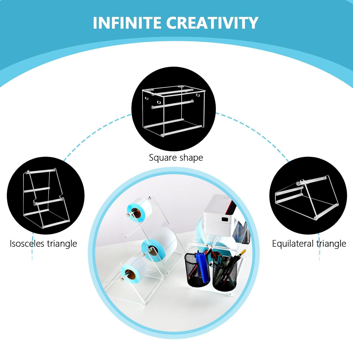 (Acrylic Label Machine Stand) Label Roll Holder for Rolls and Fanfold Labels,Acrylic Label Holder for Thermal Printer,Desktop Label Printer Holder for Home,Office,Study,Small Business