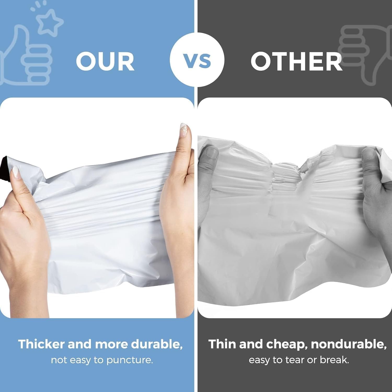 - Strong & Durable Construction - Our poly mailers are crafted with only the finest materials. Ship your packages confidently with our strong and durable poly mailers. Each mailer is equipped with a strong self-sealing adhesive strip that is tamper-resistant and tamper-evident. These poly mailers are tear-resistant, puncture-resistant, and waterproof.