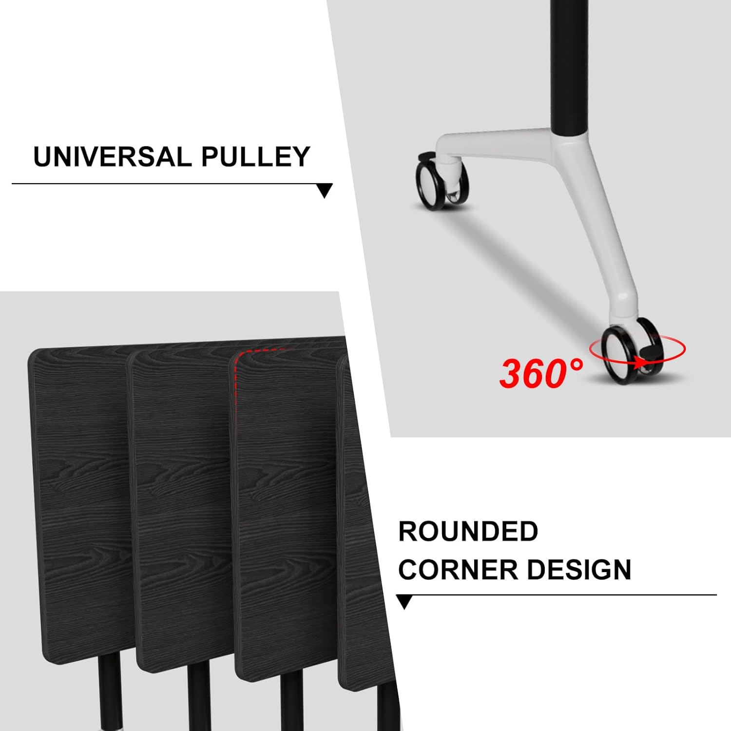 - ăMobile DesignăEach folding conference table has 4 casters, with high load-bearing capacity and good stability. The wheels turn quickly to organize your office space more efficiently. Conference rooms training rooms flip top mobile training table is perfect for different grouping needs, allowing you to quickly put together a conference room table