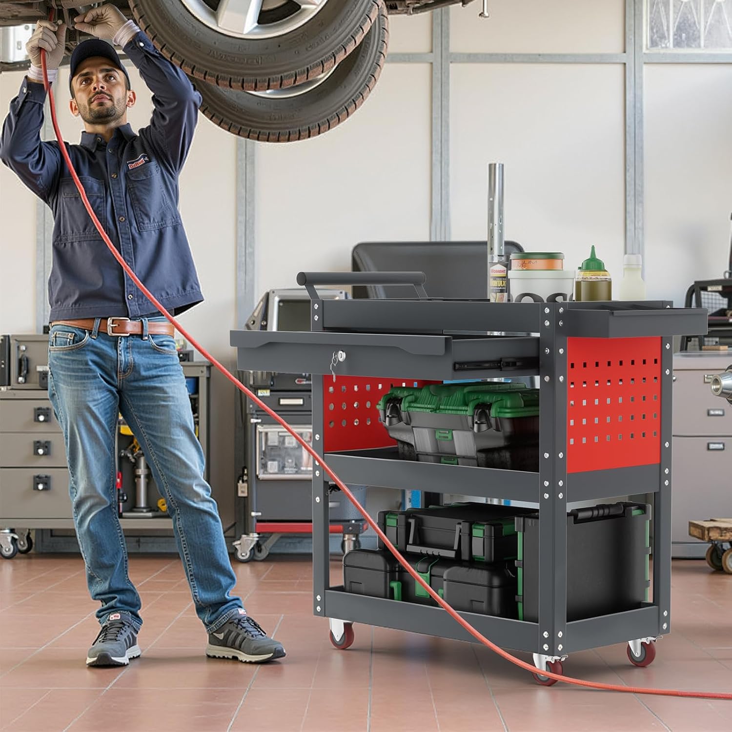 - [Multi-Scene Versatility] Ideal for auto shops, home garages, workshops, outdoor jobs, even supermarkets or DIY projects - one cart solves all your mobile storage needs!