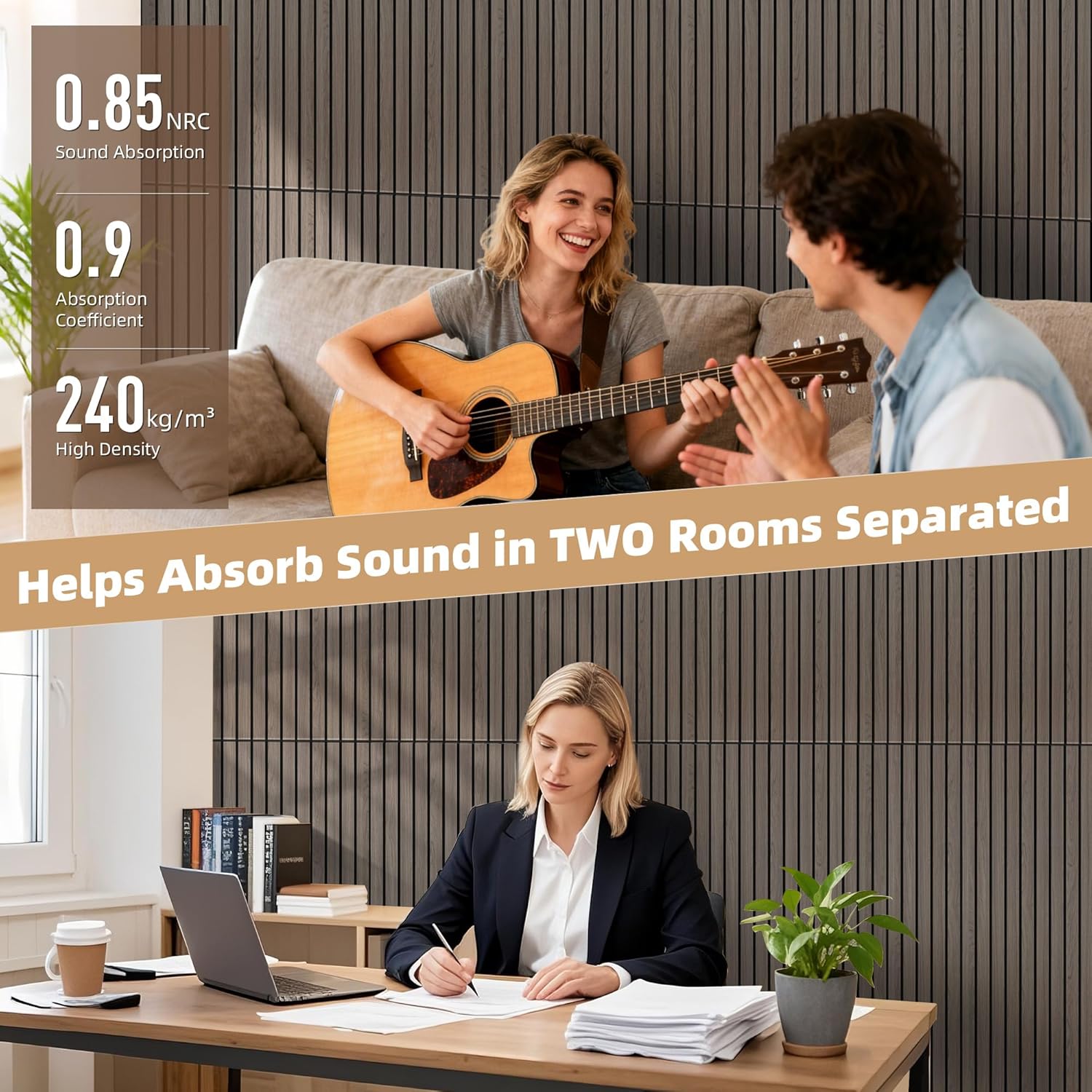 TO-TH Wood-Look Acoustic Wall Panels, 10 Pack 47.2” x 23.6” Acoustic Panels, Decorative Sound Absorbers Sound Dampening Panels for Home, Office, Basement, Walnut