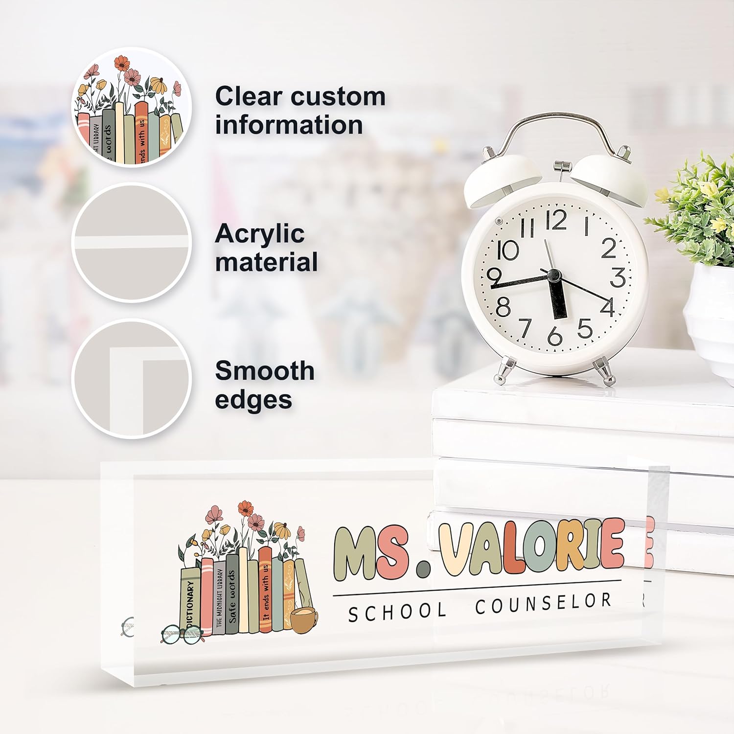 Personalized Name Plate for Desk, Custom Desk Name Plate, Acrylic Name Plate Office Desk Accessories, Personalized Office Gifts for Coworkers Teachers, Employee Appreciation Gifts (C-Teacher)