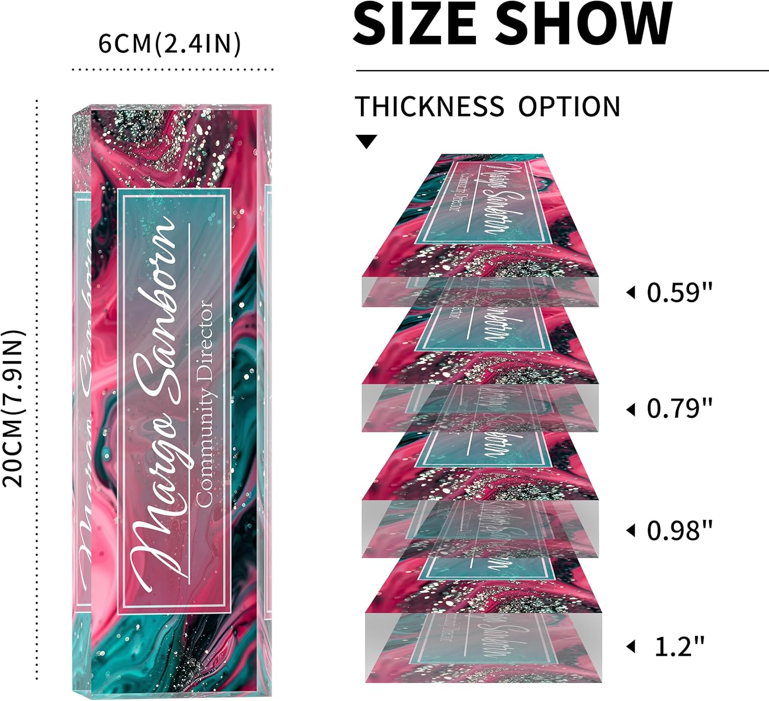 - 【Perfect Office Decor】Desk name plate personalized may be an indispensable item around you. It can be used as decoration for various occasions, such as offices, study rooms, conference rooms, classrooms. It also comes in 4 different sizes, suitable for different office scenarios, Clear 3D effects showcase your favorite fully designs and names, add an extra touch of elegance to your office.