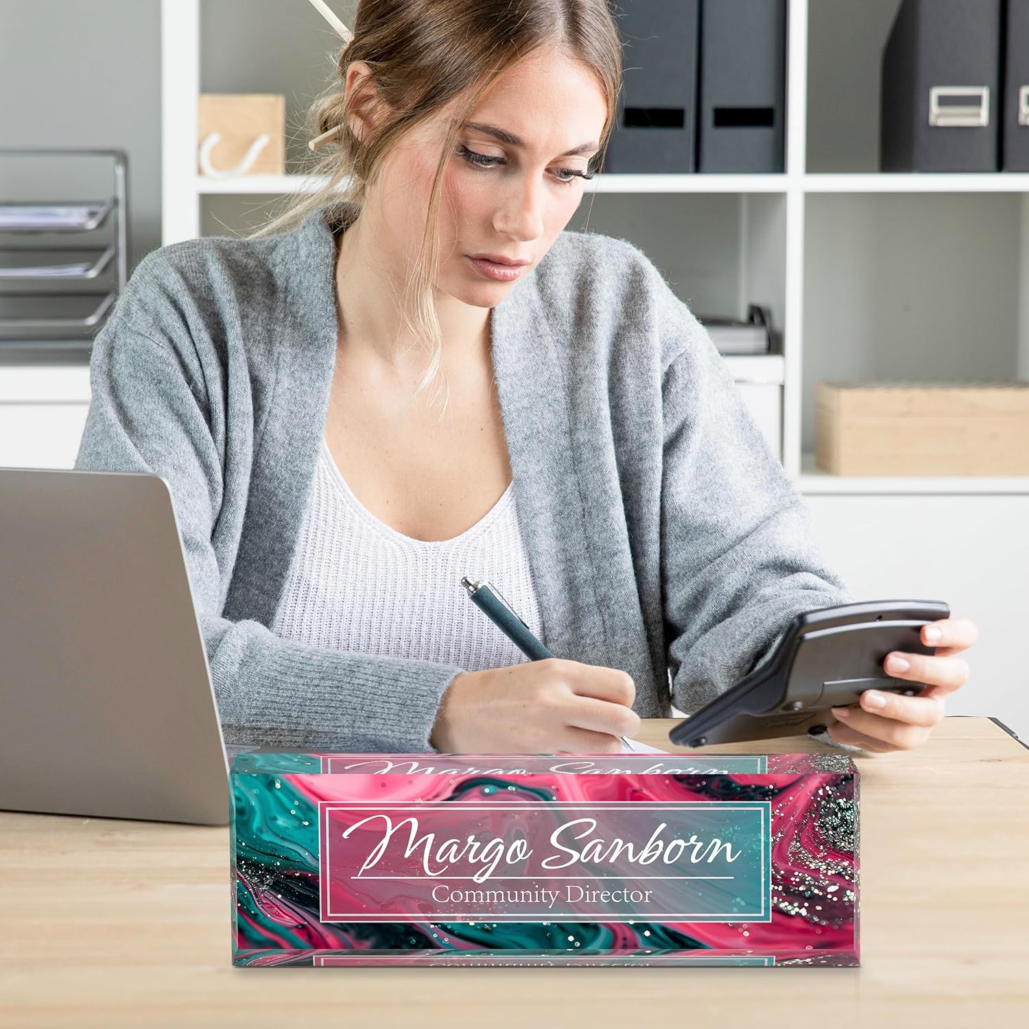 Personalized Name Plate for Desk, Custom Desk Name Plate, Acrylic Name Plate Office Desk Accessories, Personalized Office Gifts for Coworkers Teachers, Employee Appreciation Gifts (C-Teal Spark)
