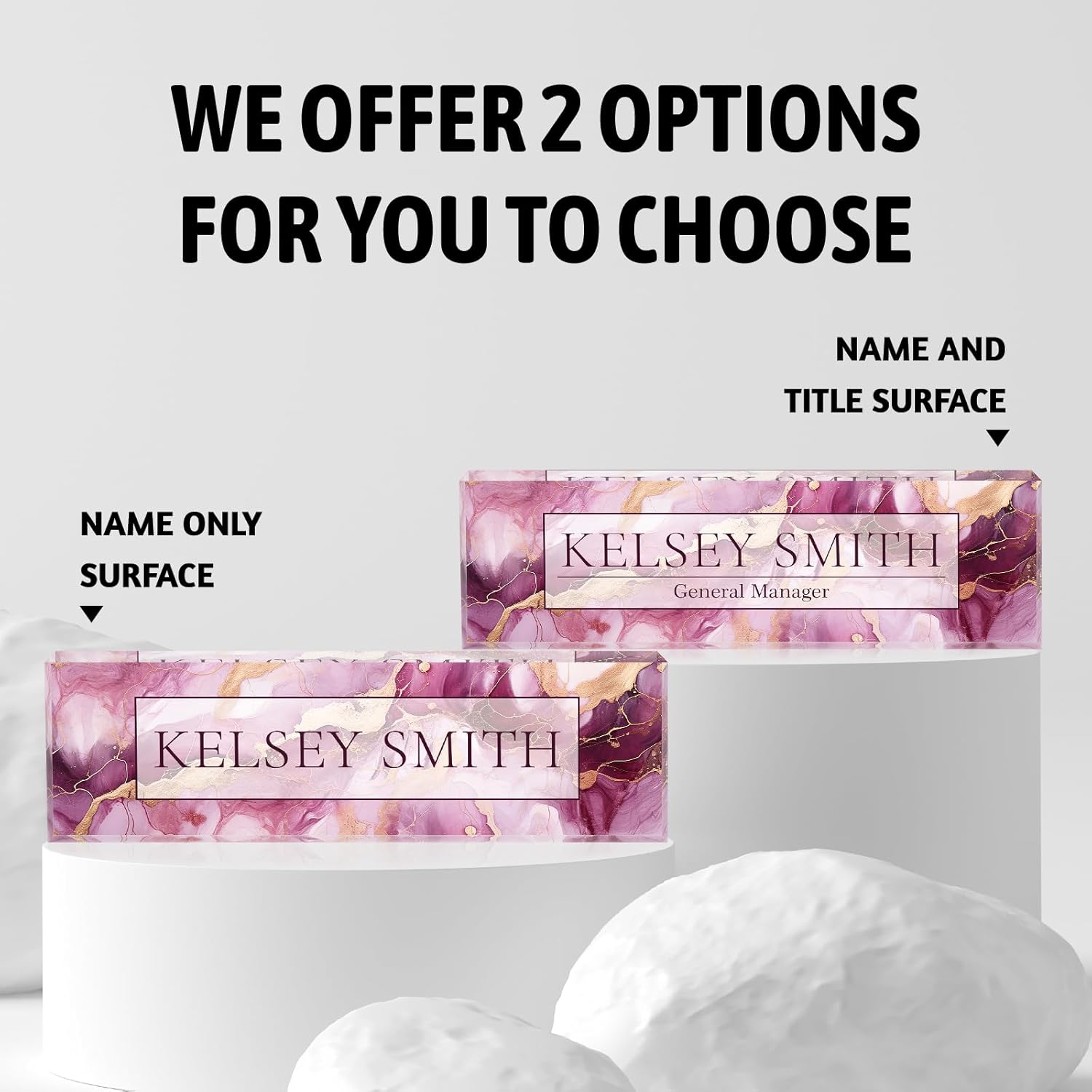 Personalized Name Plate for Desk, Custom Desk Name Plate, Acrylic Name Plate Office Desk Accessories, Personalized Office Gifts for Coworkers Teachers, Employee Appreciation Gifts (C-Mauve Marble)