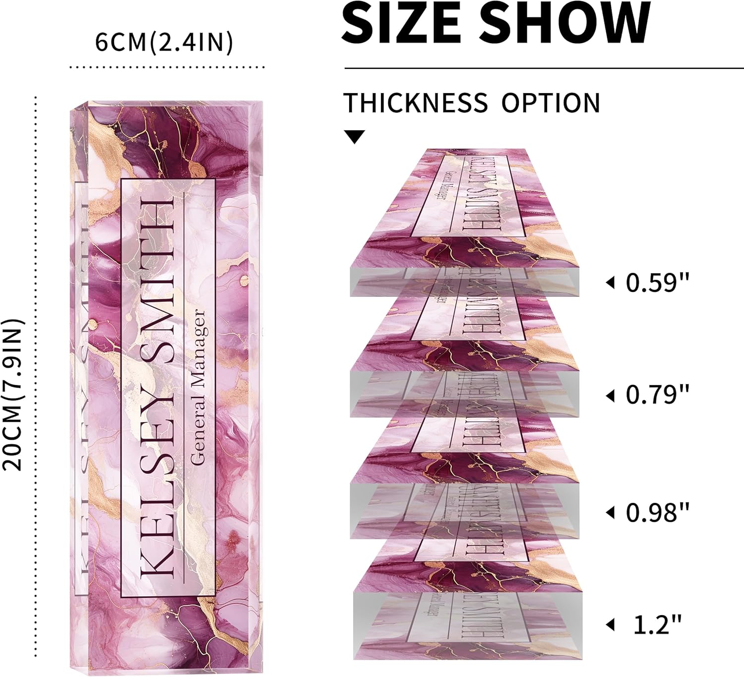 - 【High-Quality Acrylic Material】Our factory uses high-quality solid acrylic blocks to make name plates, and uses the latest high-definition UV printing machine to ensure that the content on the acrylic name plate is clear and not easily faded. So it will stand out on any desk, fully reflecting your professional ethics.
