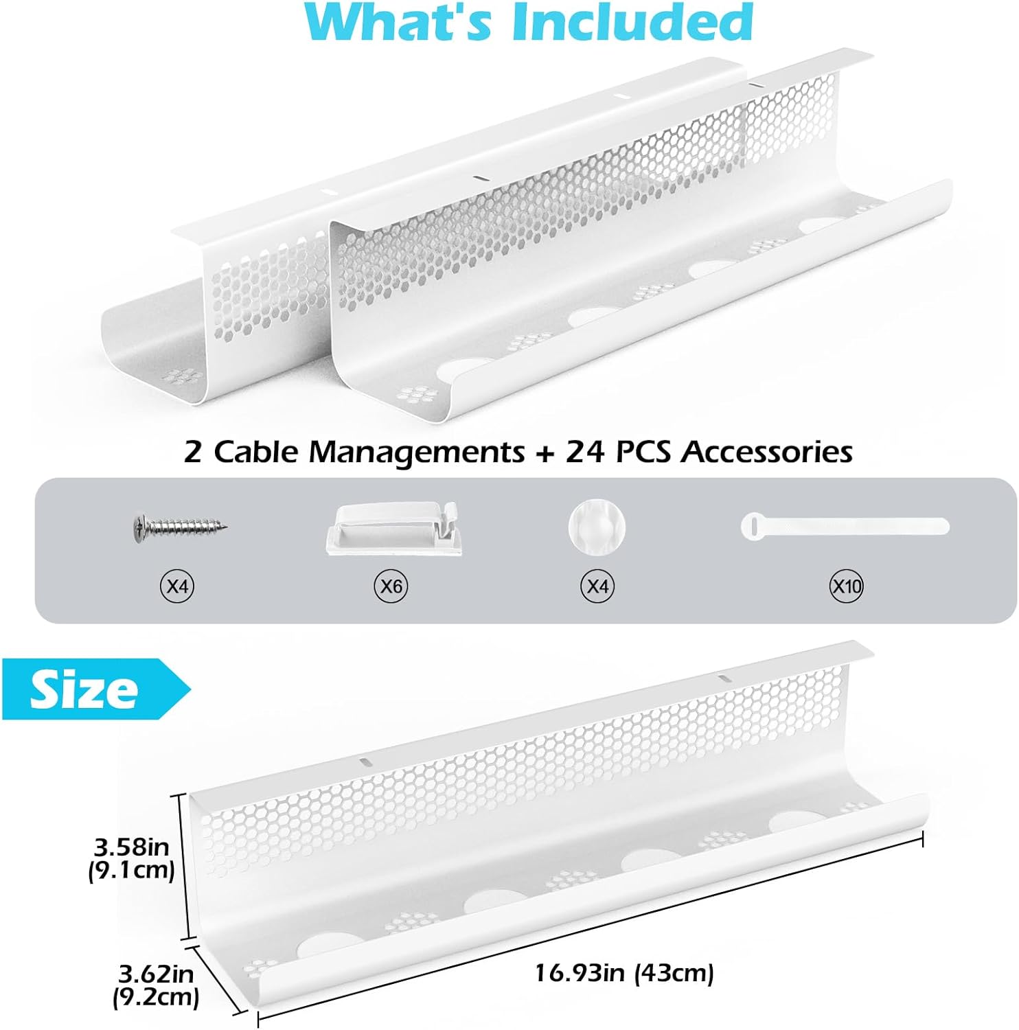 - Easy, Tool-Free Installation - Simply secure 2 cable management trays under your desk with the included screwsβno drilling needed! Ideal for most desks in offices, study rooms, or home workstations.