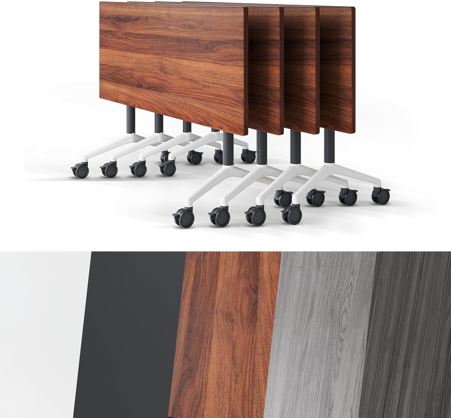 Conference Room Table, Folding Conference Tables,Thicken Grey Tabletop,Flip Top Wooden Seminar Meeting Room Table for Conference Room Offices (4, Walnut, 70.8”)