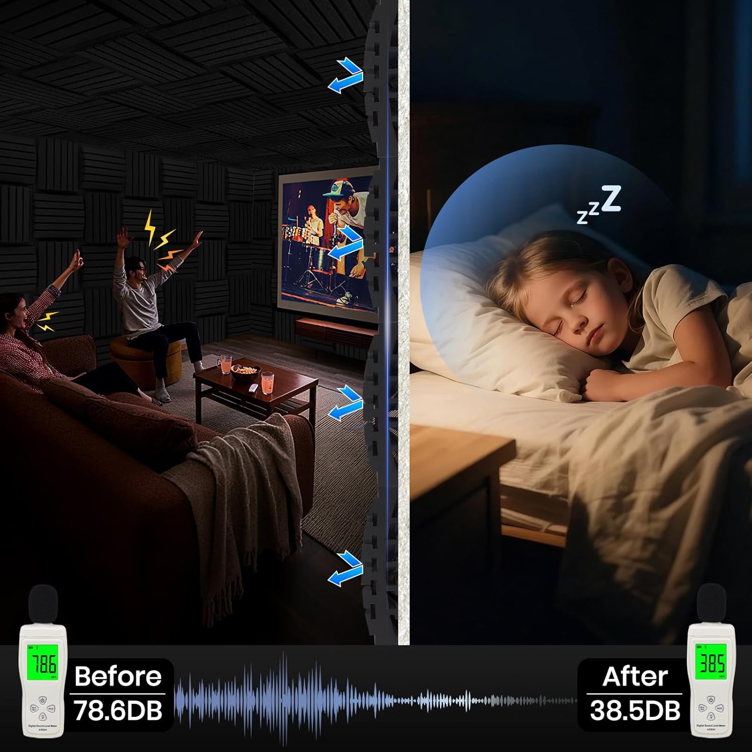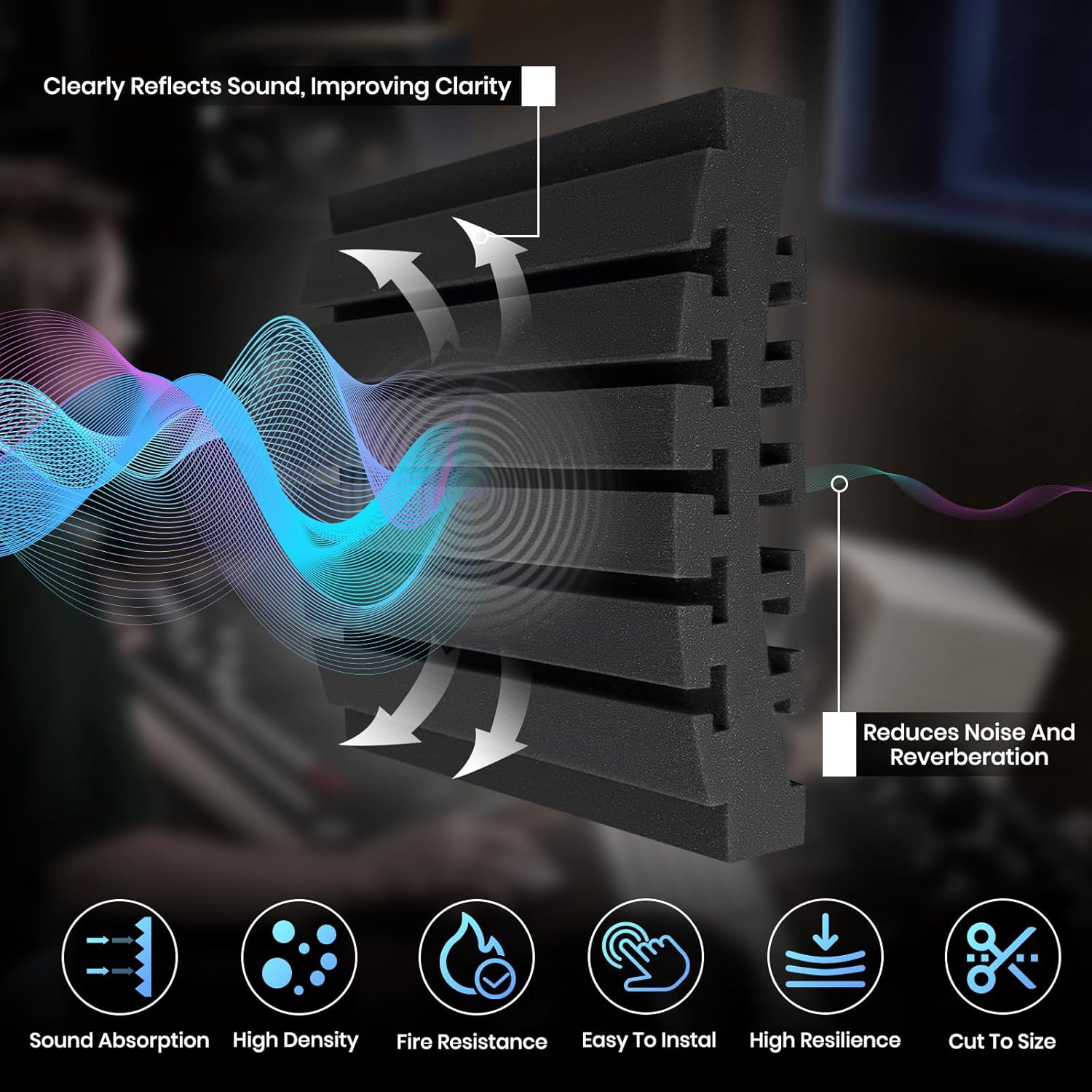 - Bring Back the Peace You Crave – Our sound dampening panels absorb echoes and background noise, so your home theater, entertainment room, or office feels calm and distraction-free. With advanced acoustic foam and unique curved groove design, they excel at diffusing and absorbing sound waves, dramatically improving room acoustics and reducing noise and echo