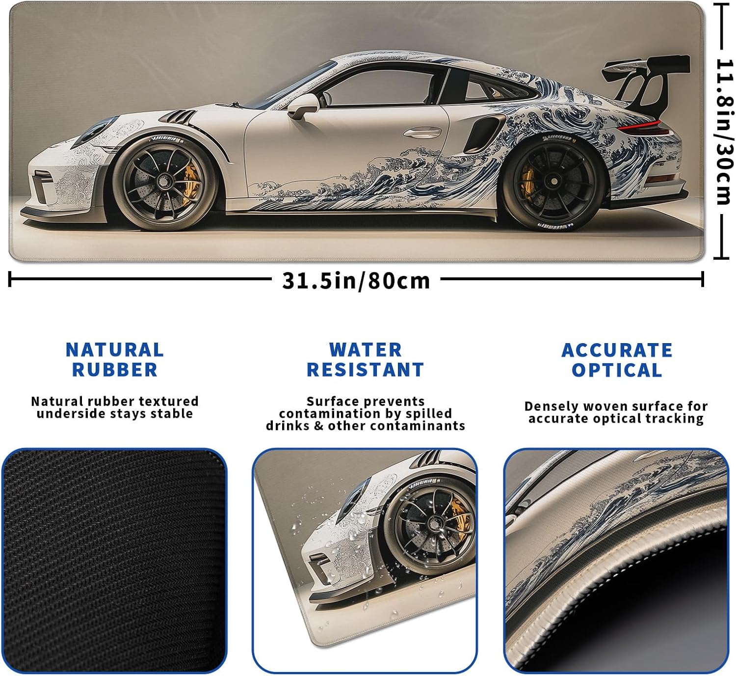 - β₯[Large and Perfect Size]:The extended White Ukiyo-e Style Sports Car desk pad measures 31.5x11.8x0.12 inches that covers most of the desk.The desk pad is large enough to have a mouse, gaming keyboard, and other desk items while maintaining protecting your desk all the time.You can freely move your mouse without any interruption and don't have to continually adjust the mat as you do with traditional mousepads.