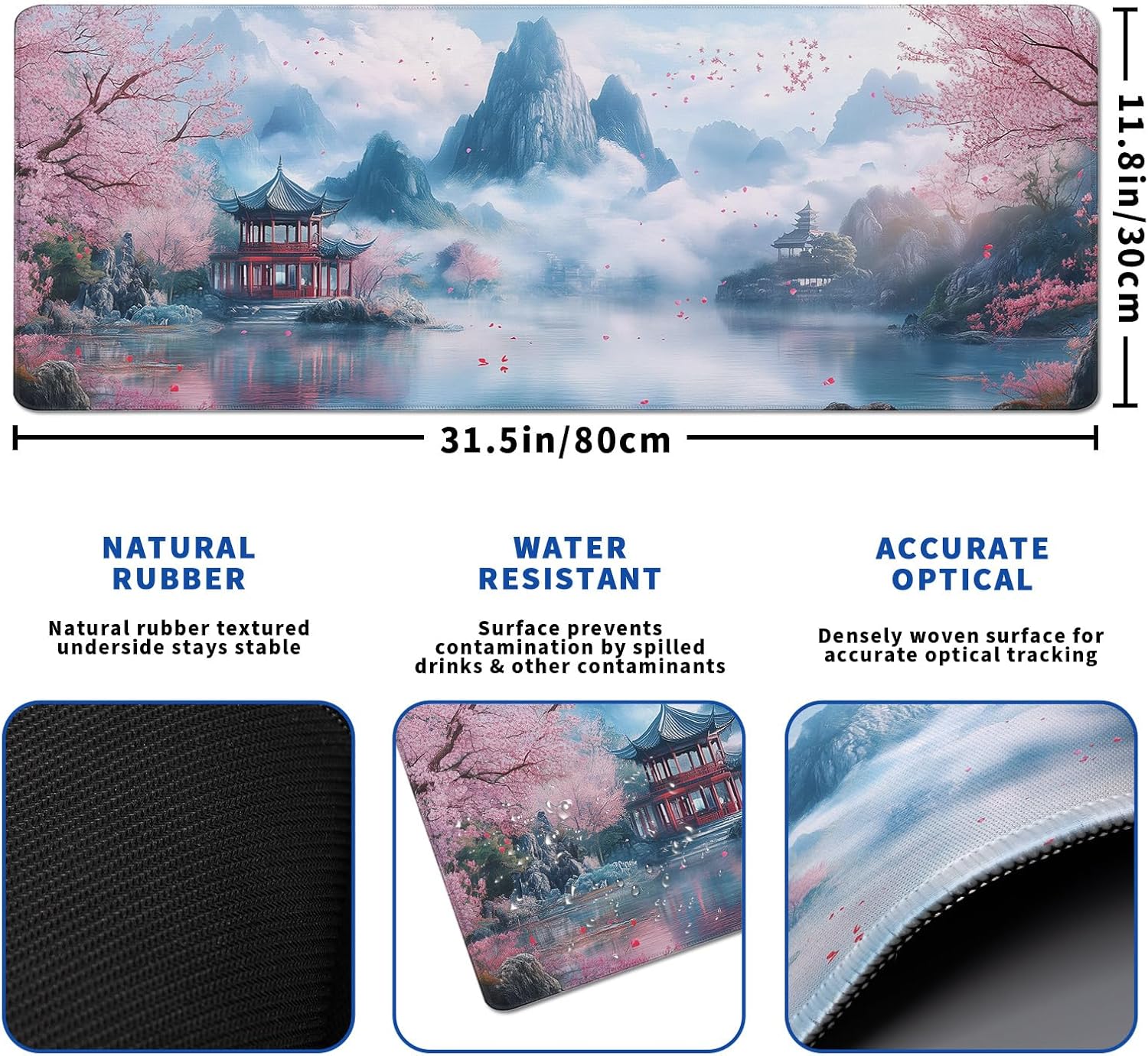 - β₯[Large and Perfect Size]:The extended Cherry Blossom Watercolor desk pad measures 31.5x11.8x0.12 inches that covers most of the desk.The desk pad is large enough to have a mouse, gaming keyboard, and other desk items while maintaining protecting your desk all the time.You can freely move your mouse without any interruption and don't have to continually adjust the mat as you do with traditional mousepads.