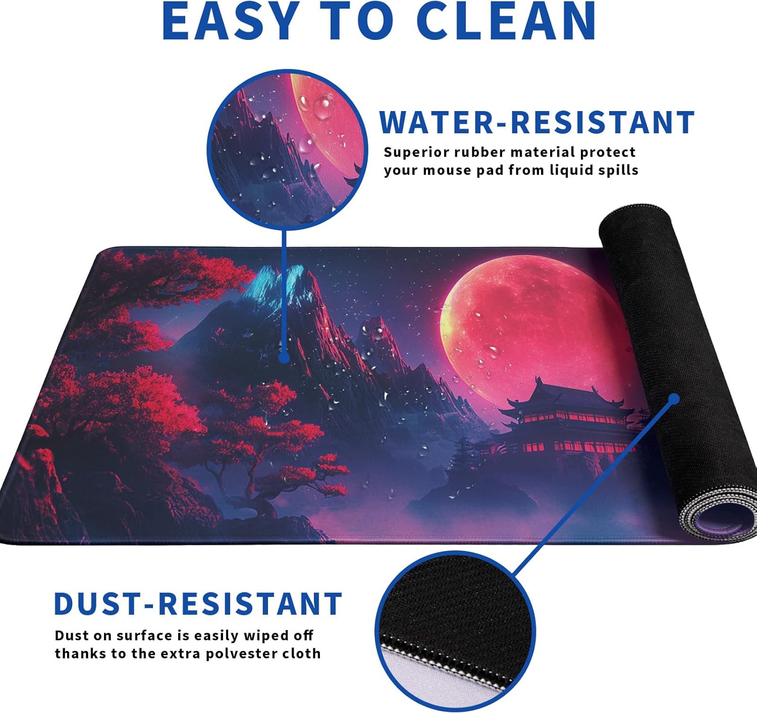 - β₯[Easy To Clean]:This large Darkness Red Moon mouse pad for desk, Spill-proof coating protects your desktop from spilled water, Drinks, Ink and the other liquid spilled liquid or other accidents. Easy to clean, Just wipe with a wet cloth or paper, Does not fade and can be washed and foldable without leaving creases, Easy to carry.
