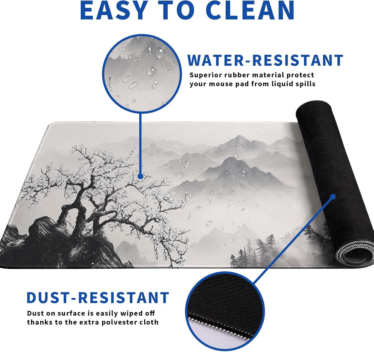 - β₯[Easy To Clean]:This large Pagoda mouse pad for desk, Spill-proof coating protects your desktop from spilled water, Drinks, Ink and the other liquid spilled liquid or other accidents.Easy to clean, Just wipe with a wet cloth or paper, Does not fade and can be washed and foldable without leaving creases, Easy to carry.