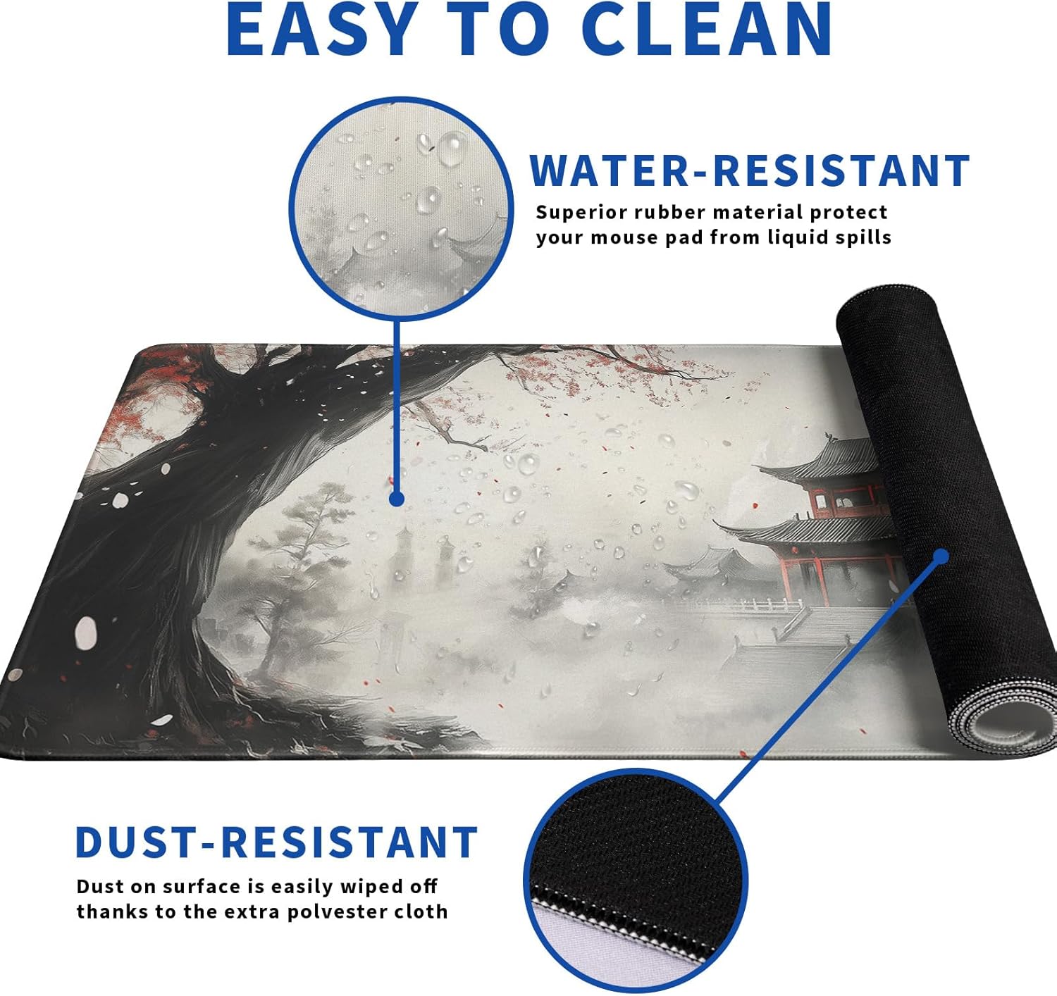 - β₯[Easy To Clean]:This large Retro Pagoda mouse pad for desk, Spill-proof coating protects your desktop from spilled water, Drinks, Ink and the other liquid spilled liquid or other accidents.Easy to clean, Just wipe with a wet cloth or paper, Does not fade and can be washed and foldable without leaving creases, Easy to carry.