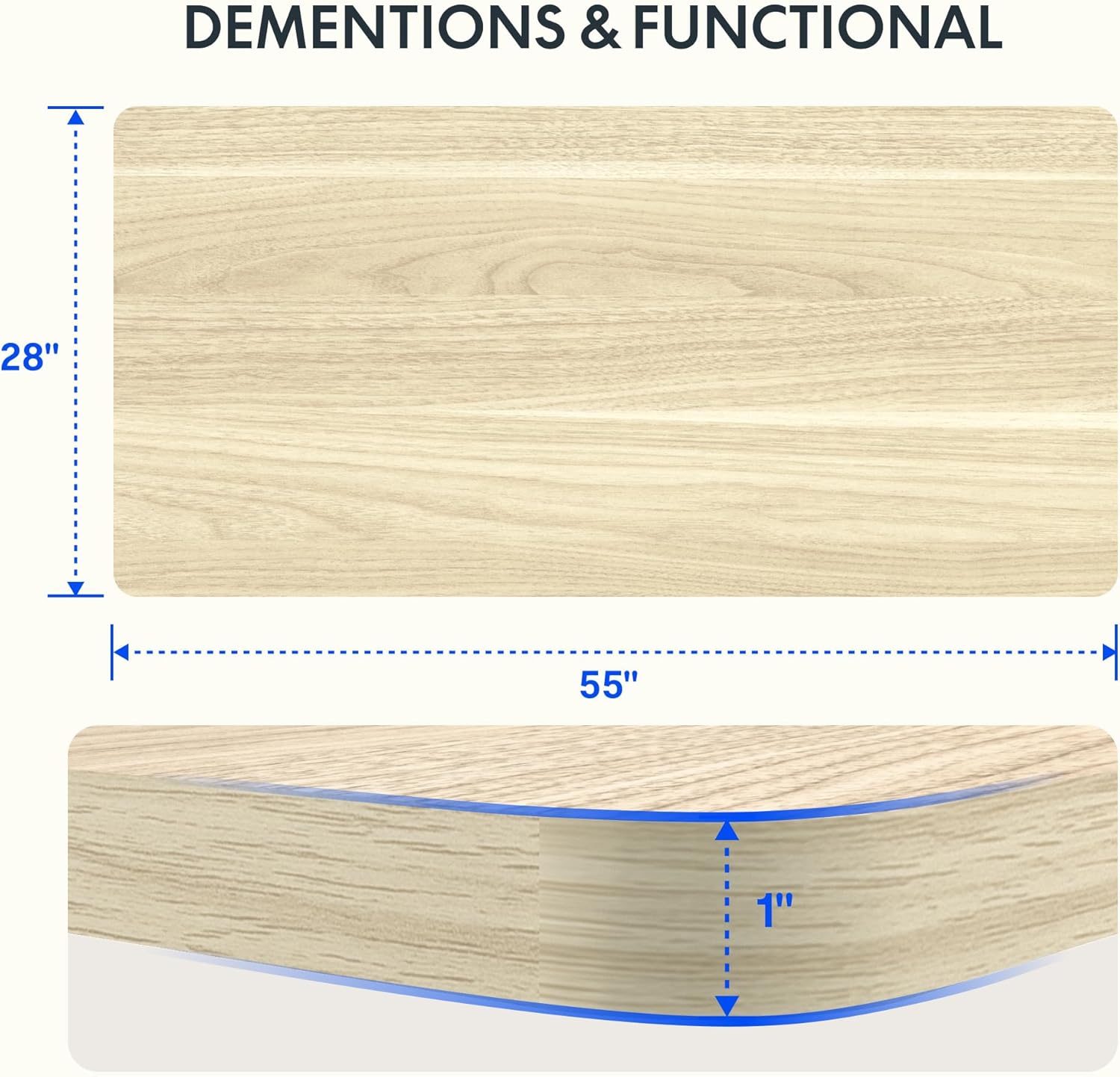 - AMPLE WHOLE-PIECE DESKTOP: With its whole-piece 1β eco-friendly desktop, this standing desk provides plenty of room for your computer setup, documents, and accessories, creating a well-organized and productive work environment. Due to hand measurements, desktop dimensions may vary slightly by 0 to 3β.