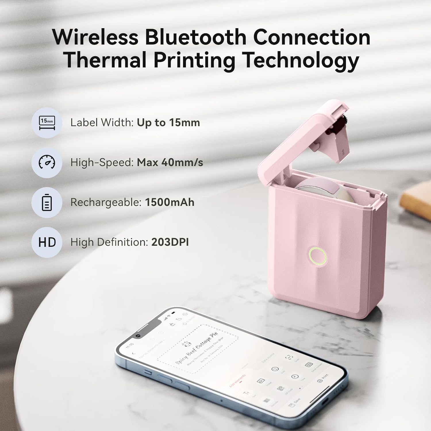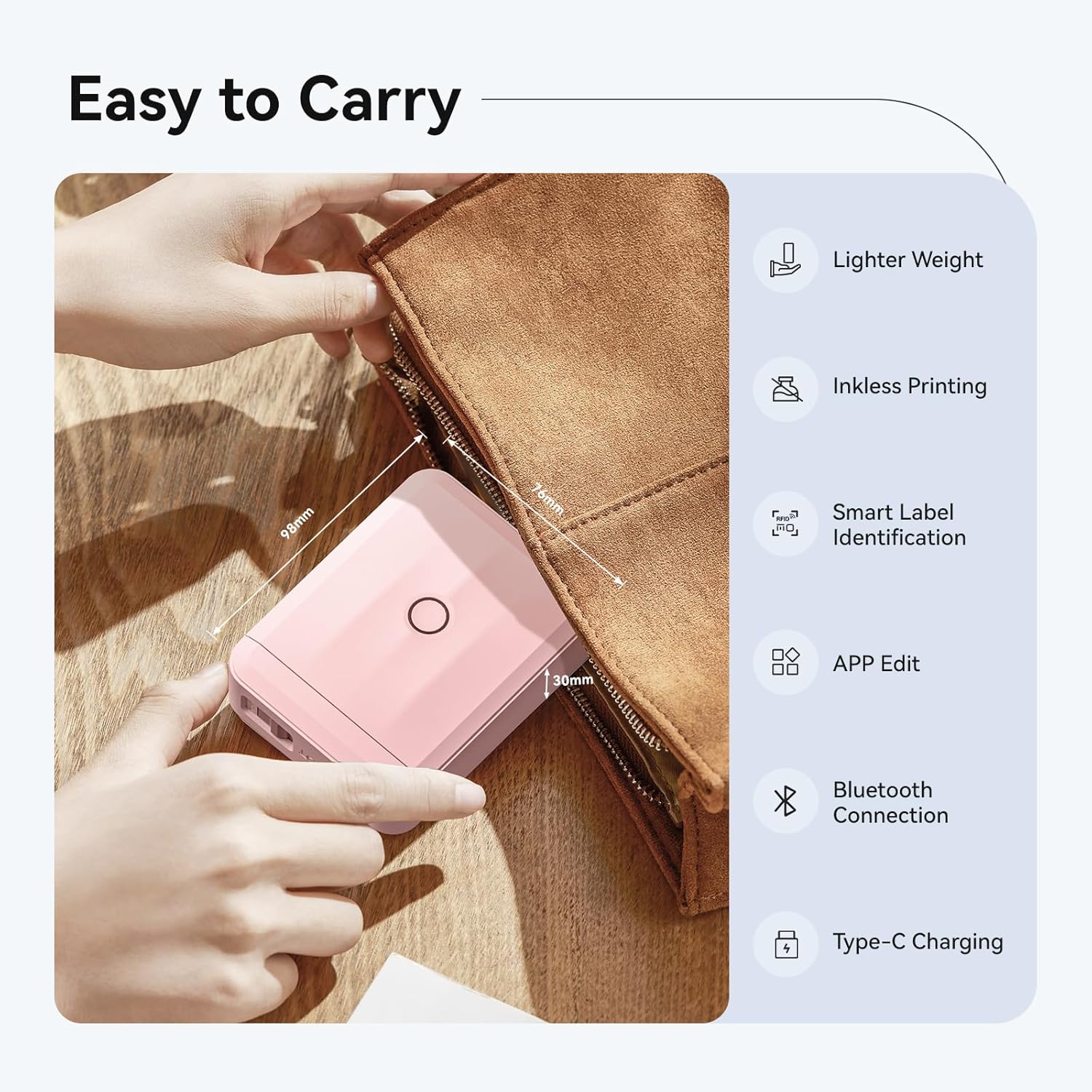 NIIMBOT D110 Upgraded Version Mini Label Maker Machine with Tape, Portable Bluetooth Thermal Printer, Sticker Labeler with Multiple Templates for Office Organization Home Kitchen School, Pink