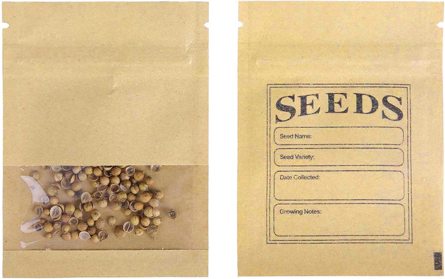 - The kraft paper bags is designed with the zippper lock, it can be resealable; designed with a preprinted seed collecting template, you can fill in essential information about the seeds