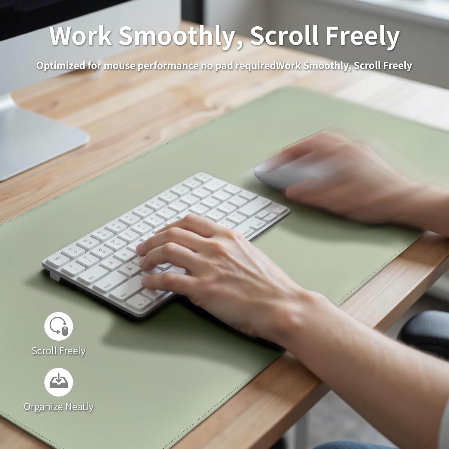 Oversized Non-Slip Desk Pad Protector – Grips Desk Firmly, Anti-Slip Like You've Never Seen! Vegan Leather Waterproof Laptop Mat for Keyboard & Mouse – Large Office Pad– Matcha Green