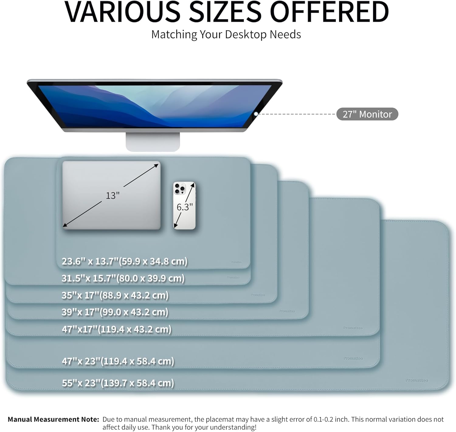 - 【10 Elegant Colors – Match Any Style】 Elevate your setup with this faux leather desk pad, available in 10 modern colors to suit your space. Whether you prefer a professional leather office pad or a cozy laptop desk mat, Promattoo offers style and function in one.