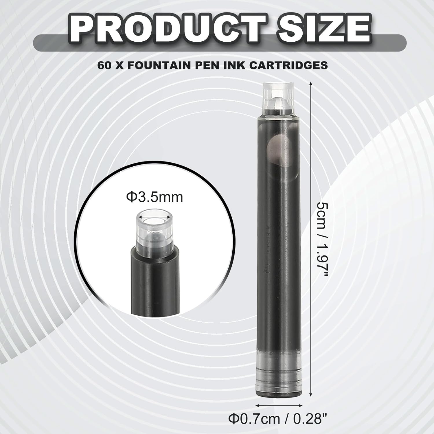 PATIKIL 60Pcs Fountain Pen Ink Cartridges, 3.4mm Bore Diameter Pen Ink Refill Standard International Refill Cartridges for Writing Business, Black