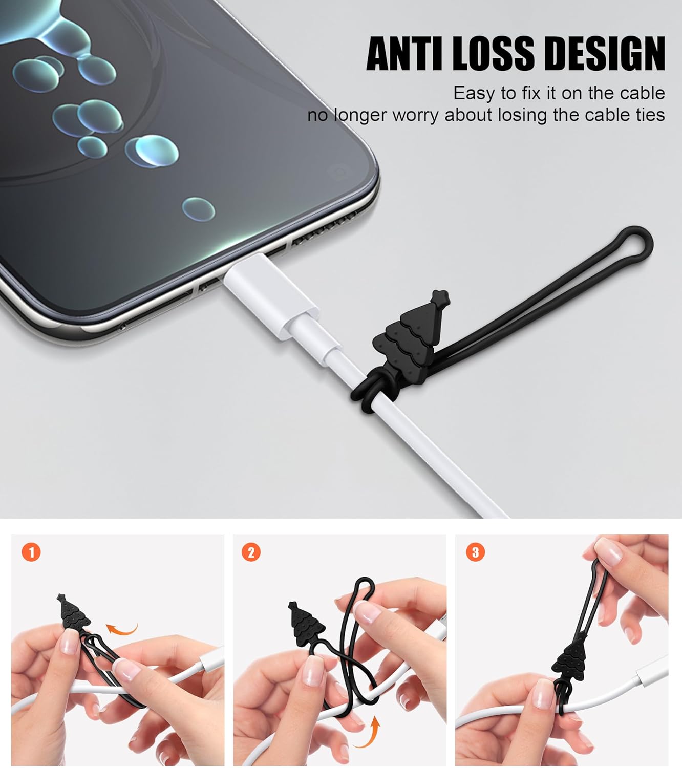 - 【Easy to Use & Anti-Loss】The most convenient design allows you to easily organize like tying a rubber band. Compact and portable, but it still has anti loss function. Simply wrap around the cable and thread the tail end through the middle to easily secure it to the cable, avoiding loss