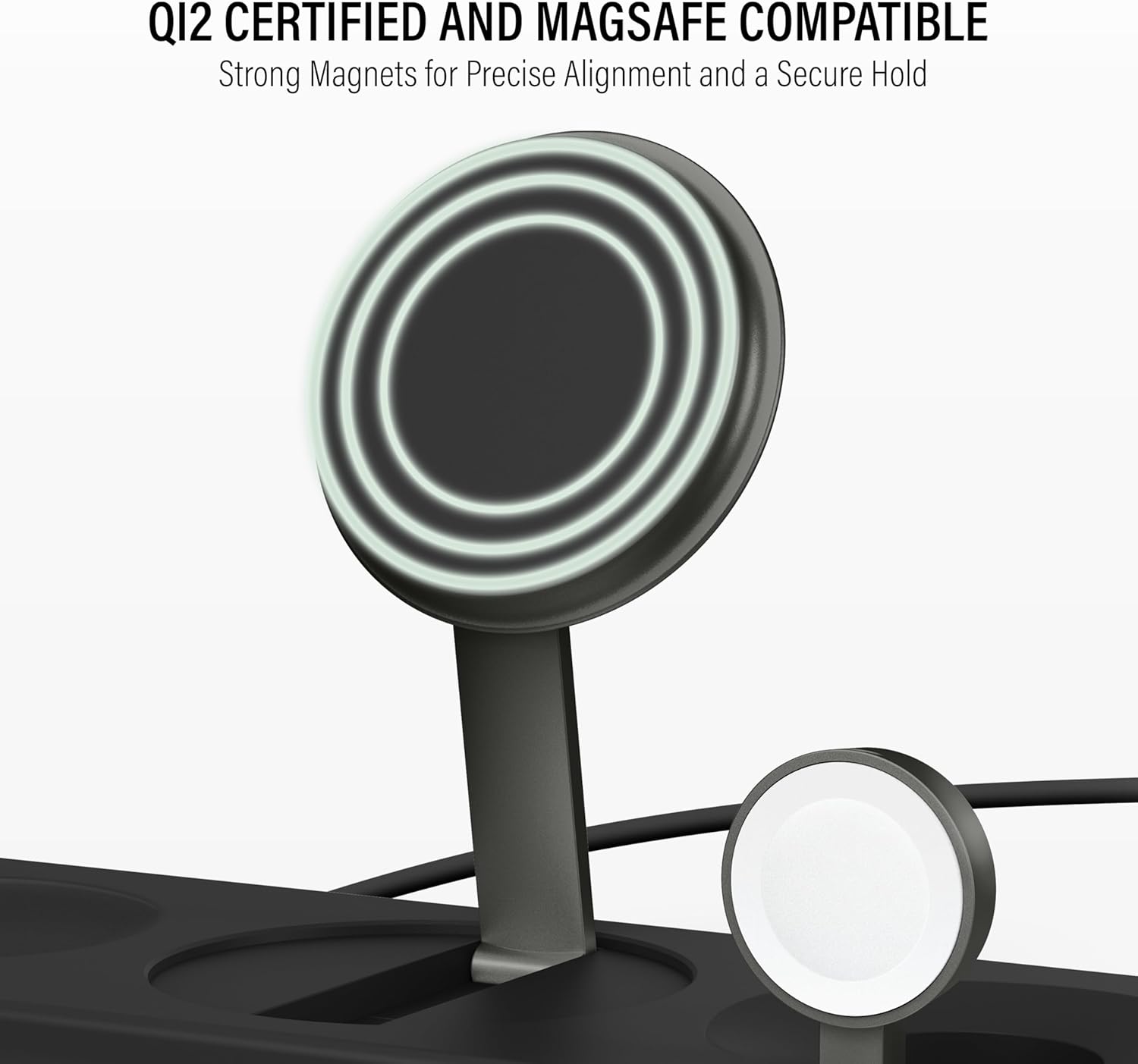 - Qi2 15W Fast Charging with MagSafe: Charge up to 2x faster with this 3-in-1 charging station powered by Qi2 technology. Designed for speed, safety, and efficiency with built-in protection against overheating and overvoltage to keep devices safe.
