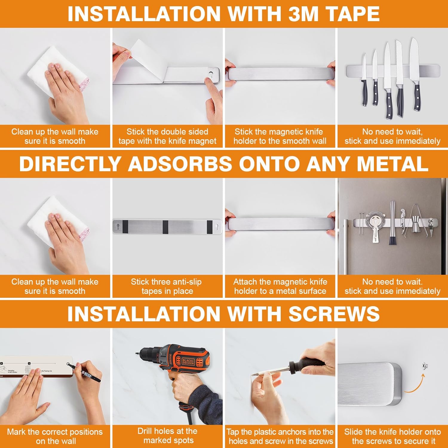- Ultra-Strong Neodymium Magnet:Equipped with a full-length, powerful neodymium magnet that securely holds even your heaviest knives and cleavers—more than enough for a busy kitchen.