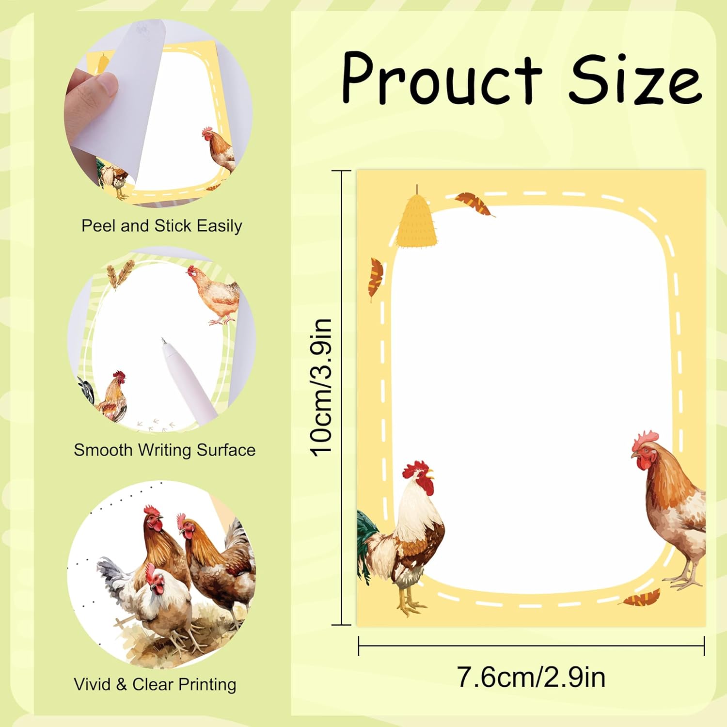 9 Pack Funny Chicken Sticky Notes Set, 450 Sheets Farm-Themed Self-Stick Notepads with Cute Hen and Rooster Designs, Country Gifts for Women Chicken Lovers or Office Use