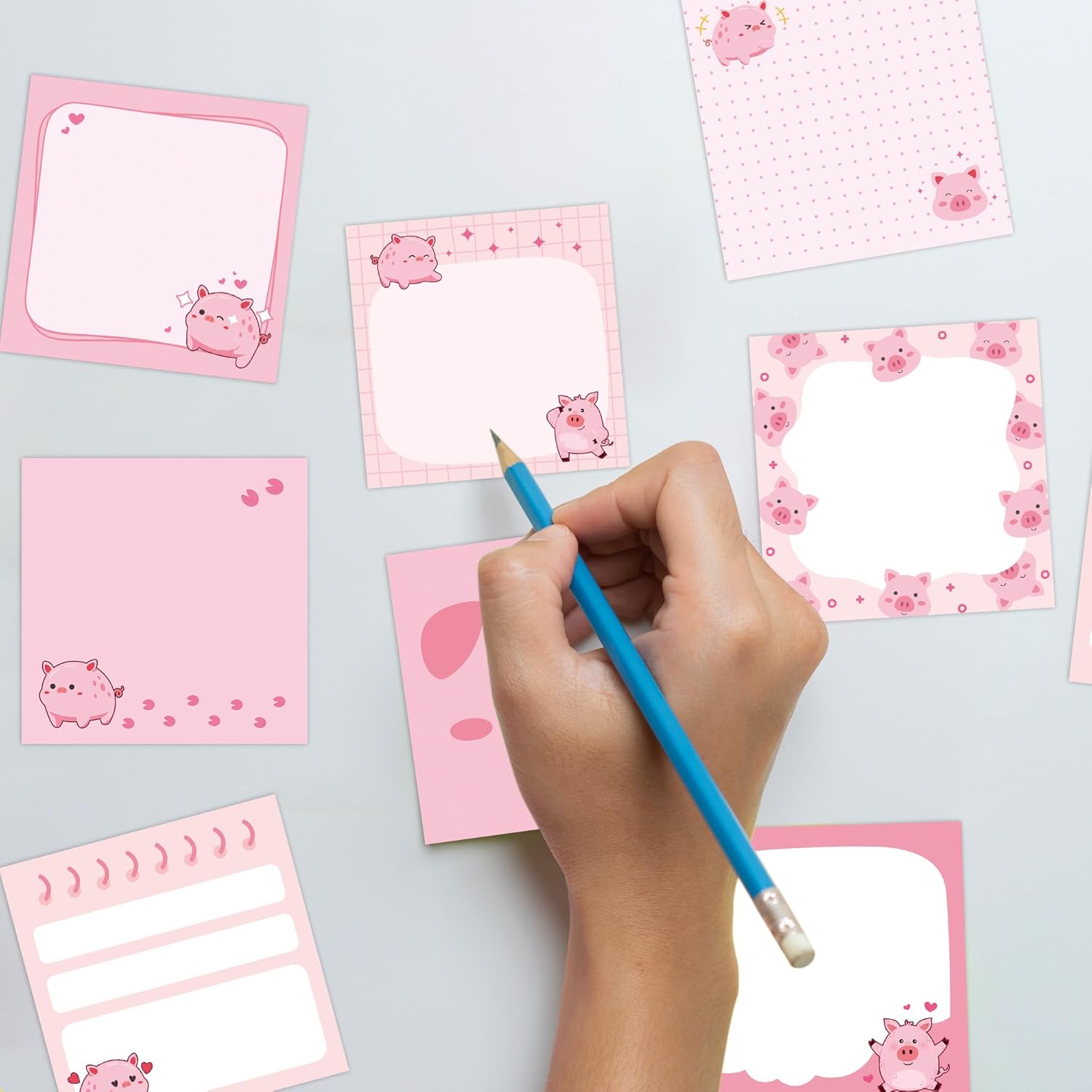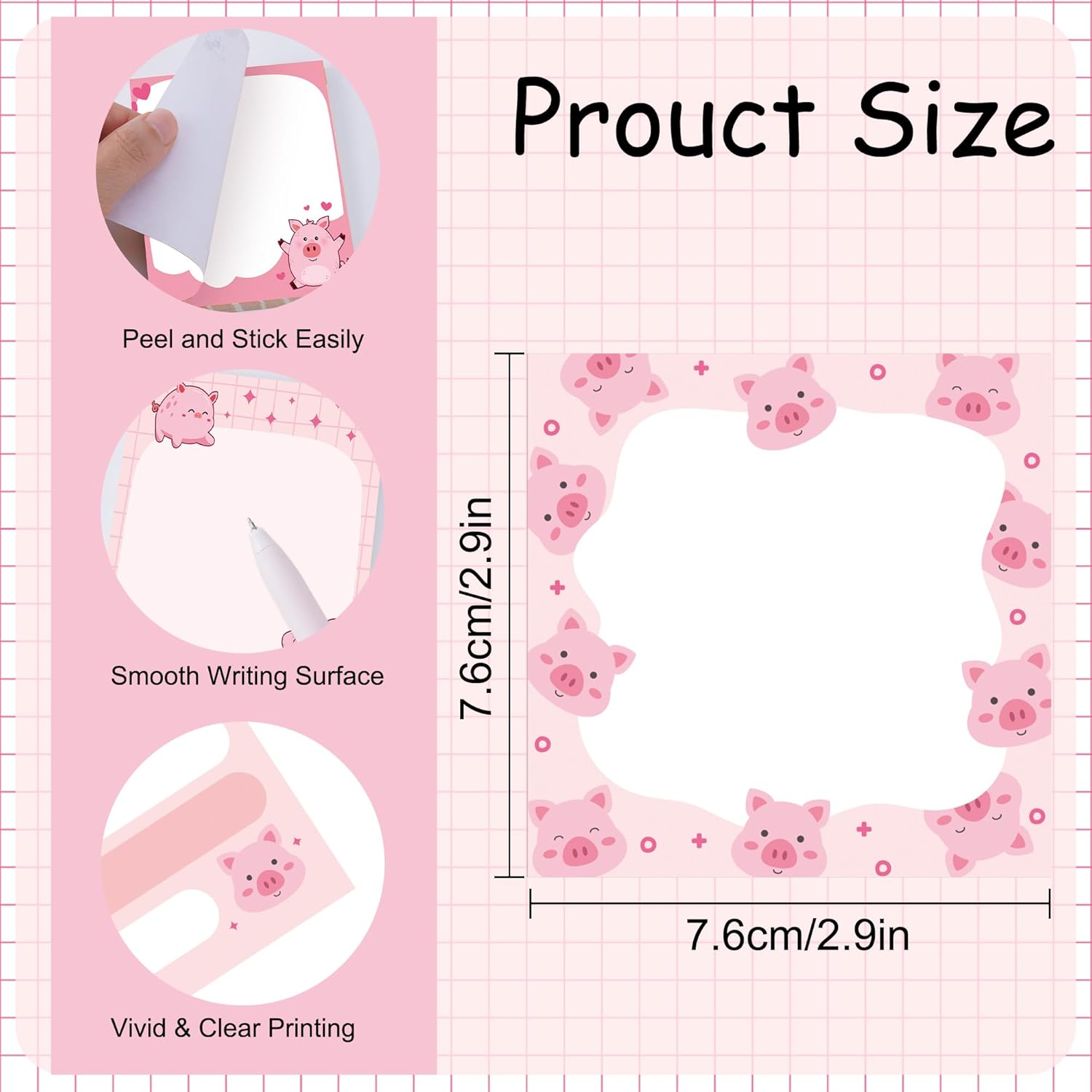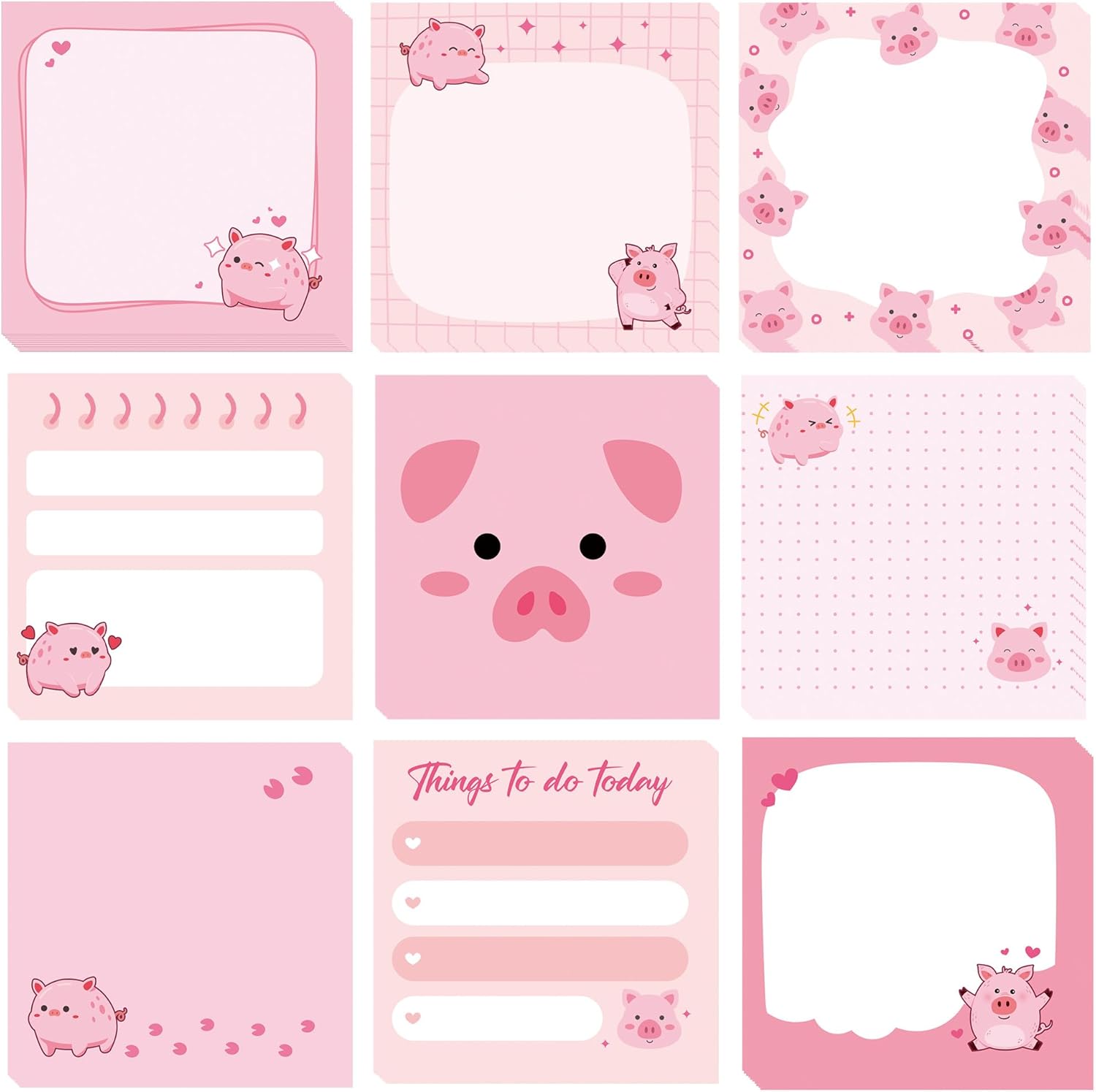 9 Pack Cute Pig Sticky Notes Set, 450 Sheets Pink Cartoon Self-Stick Notepads with Kawaii Piggy Designs, Fun Gifts for Girls Kids Students or Office Use