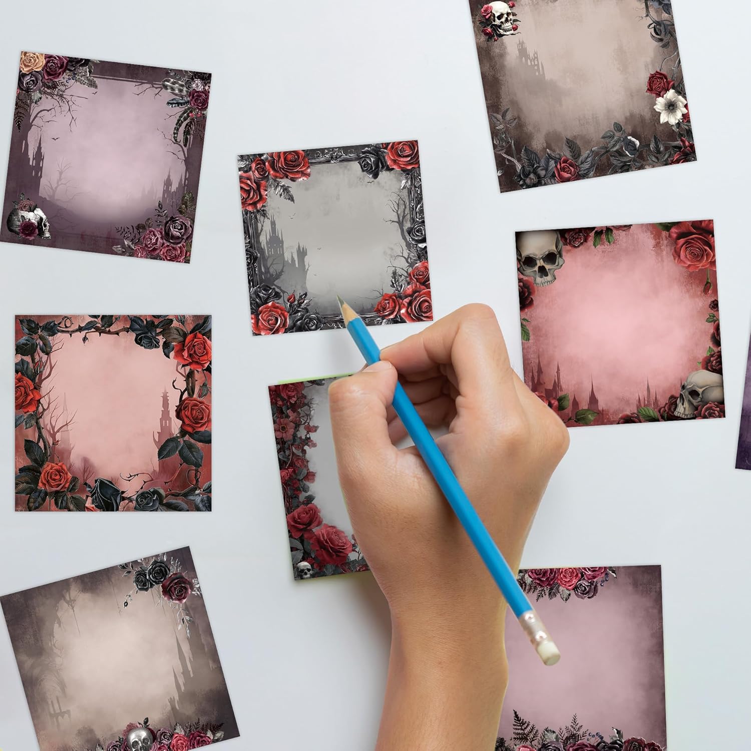 9 Pack Dark Romance Sticky Notes Set, 450 Sheets Gothic Halloween Self-Stick Notepads with Skull Rose Designs, Aesthetic Witchy Stationery Gifts for Women Teens